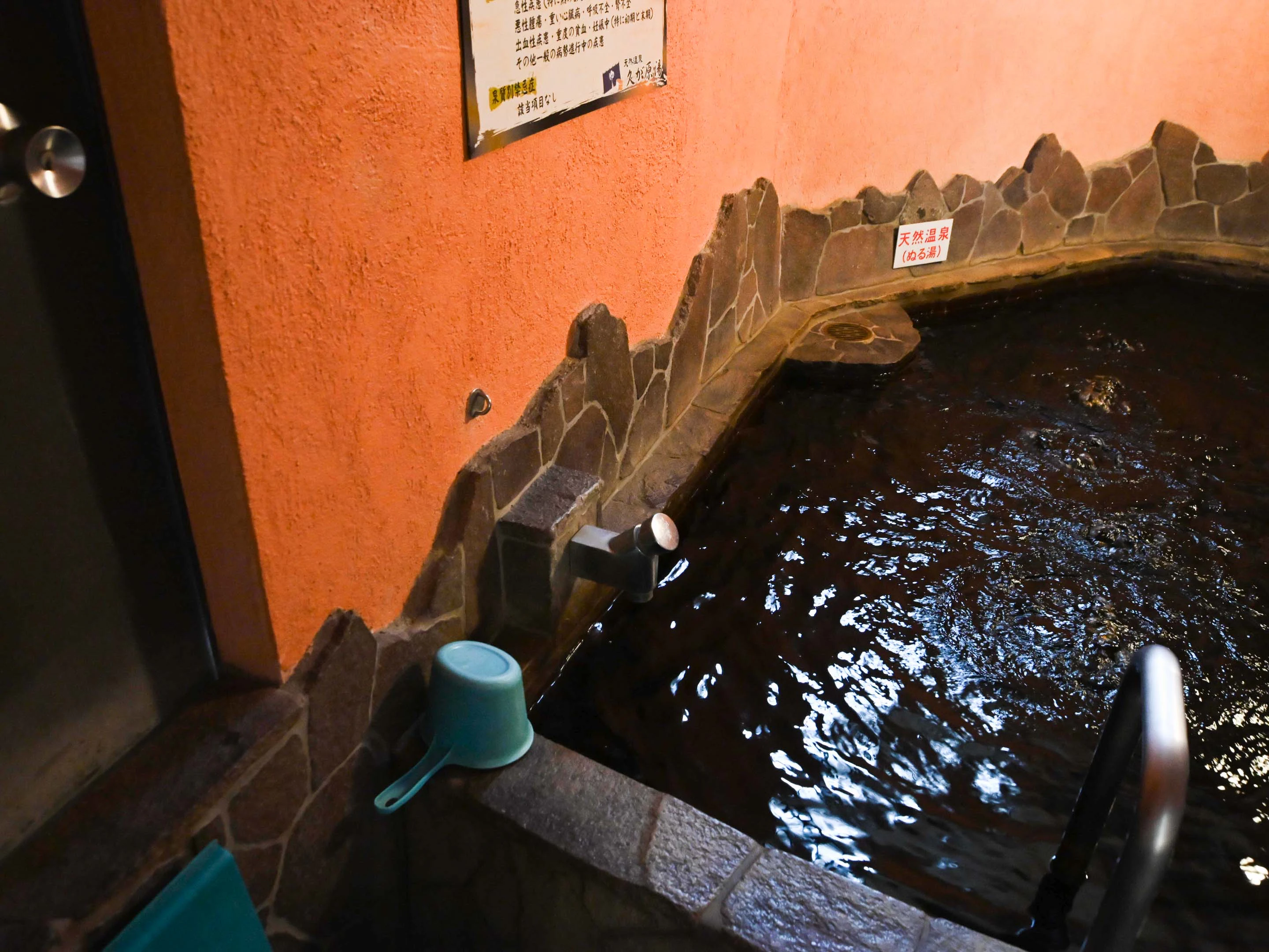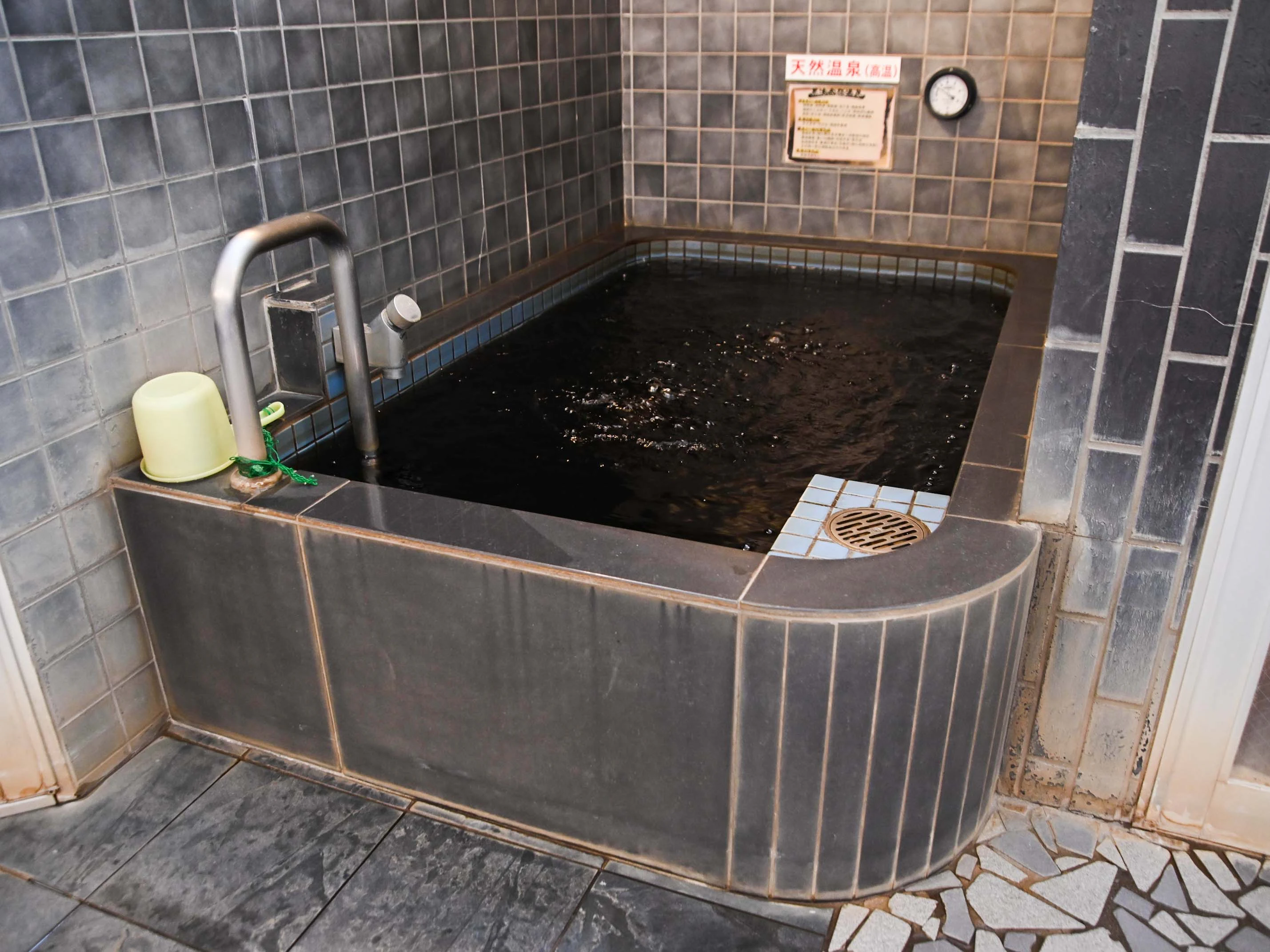 月の湯では、洞窟のような独立空間で、たっぷりと黒湯が楽しめます。
