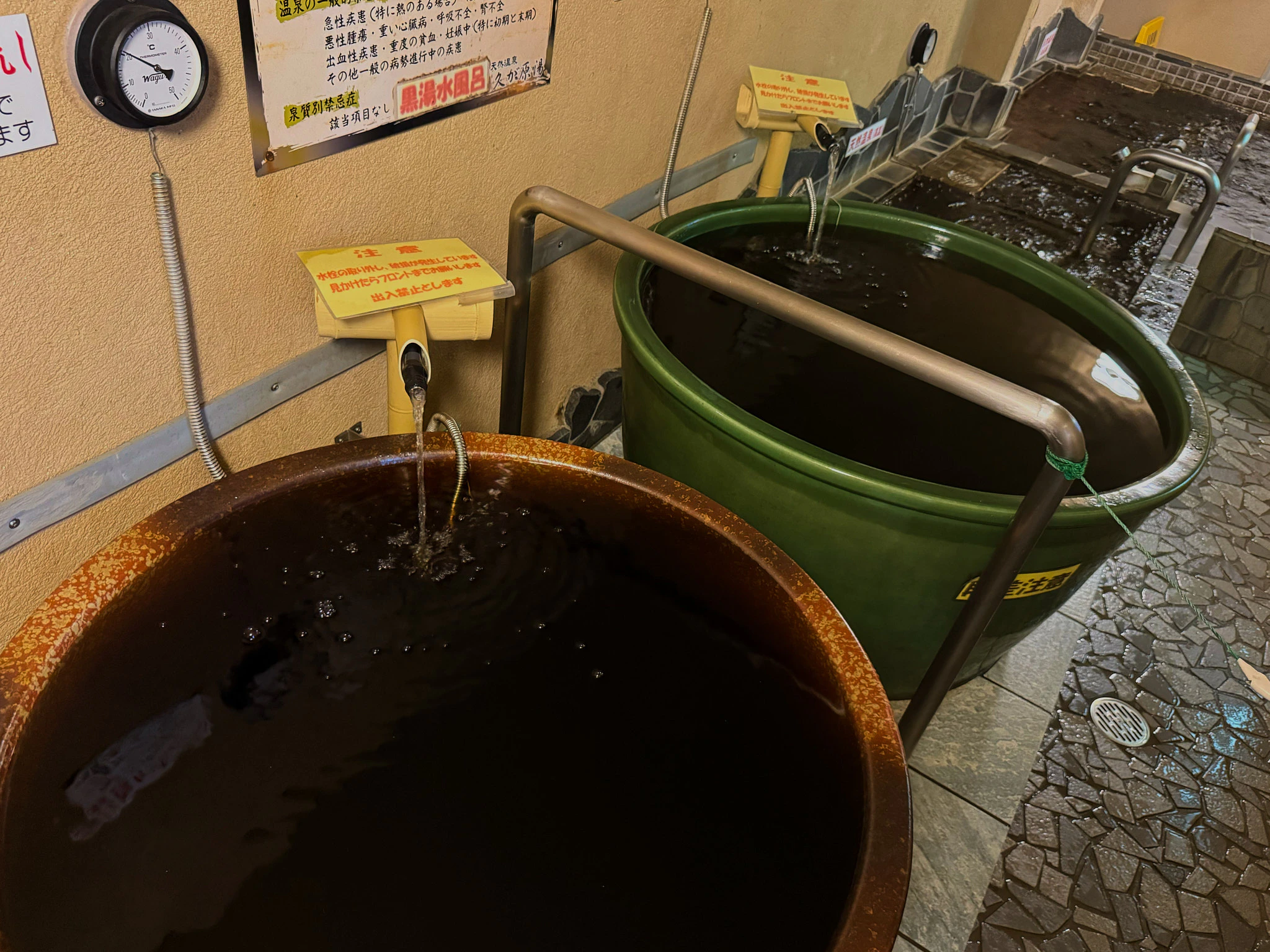 どんな方でも満足できるようにと「ぬる湯」と「あつ湯」、温度ちがいの2種類の温泉が楽しめるのも、粋なはからいです!