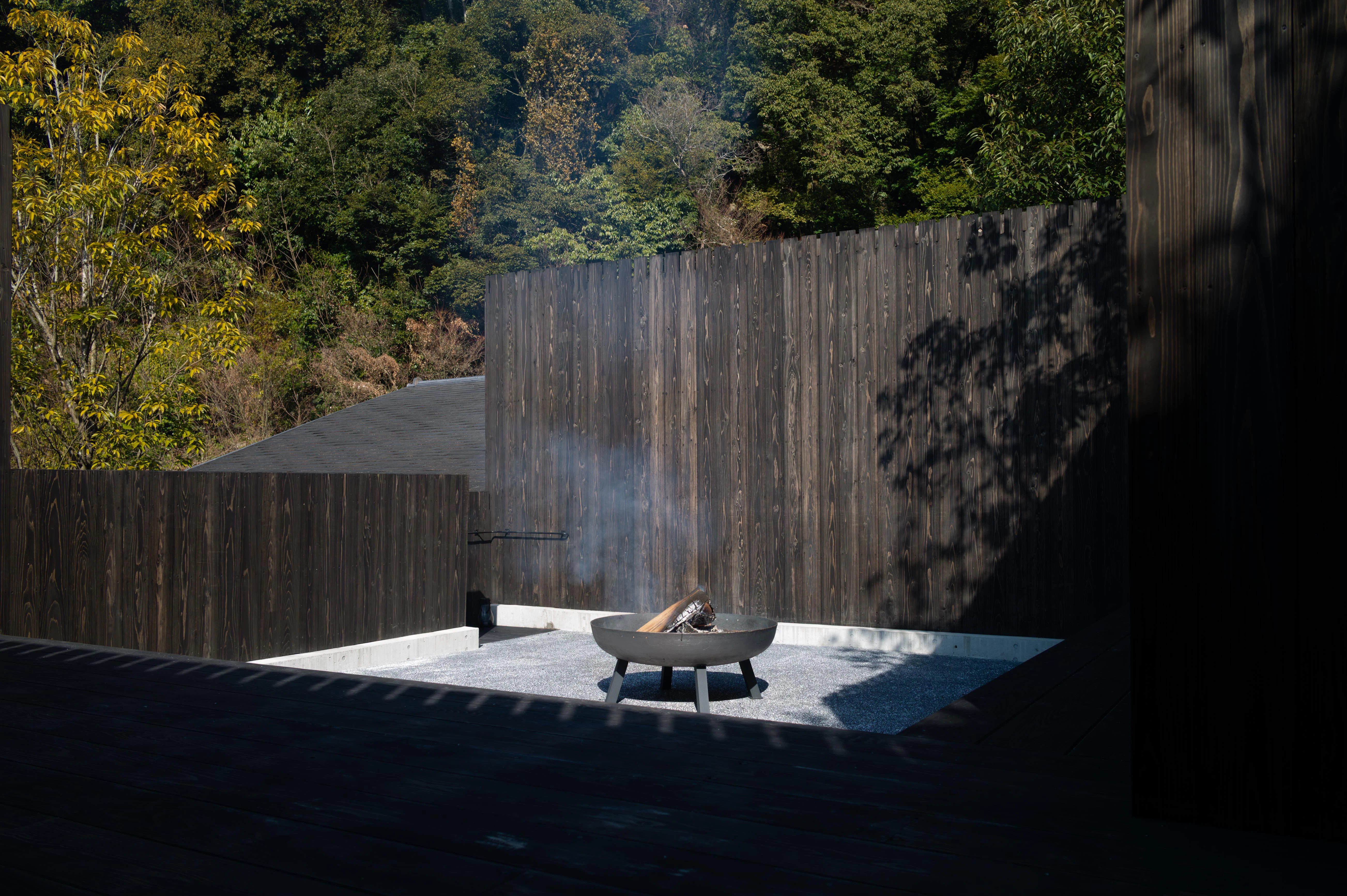 最後は休憩スペースでのんびり。この日は中央に焚火がたかれていました。