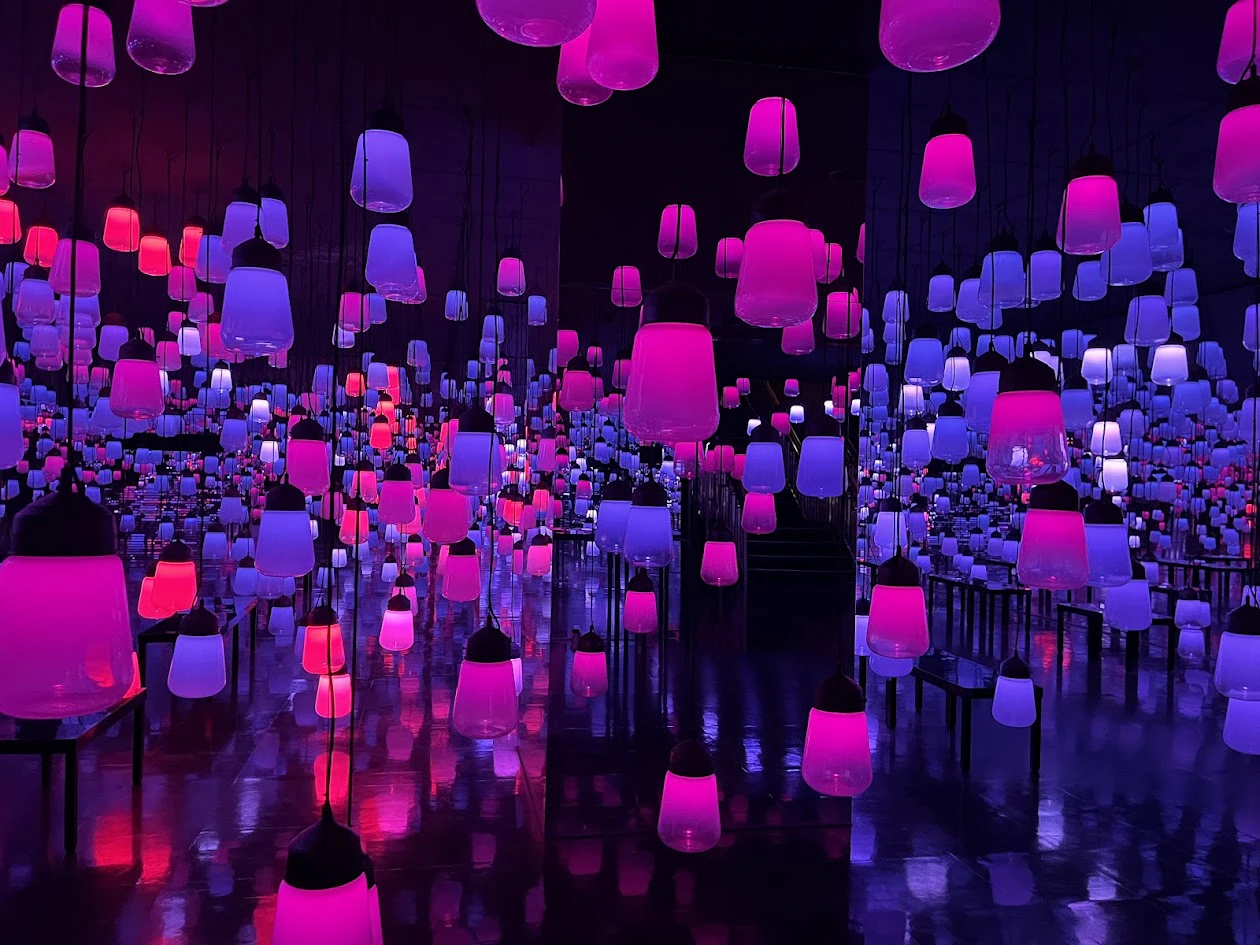 「ええっ、なにこれ!?」 目の前に広がっていたのは、体験型デジタルアートで有名な「チームラボ」による幻想的な世界。