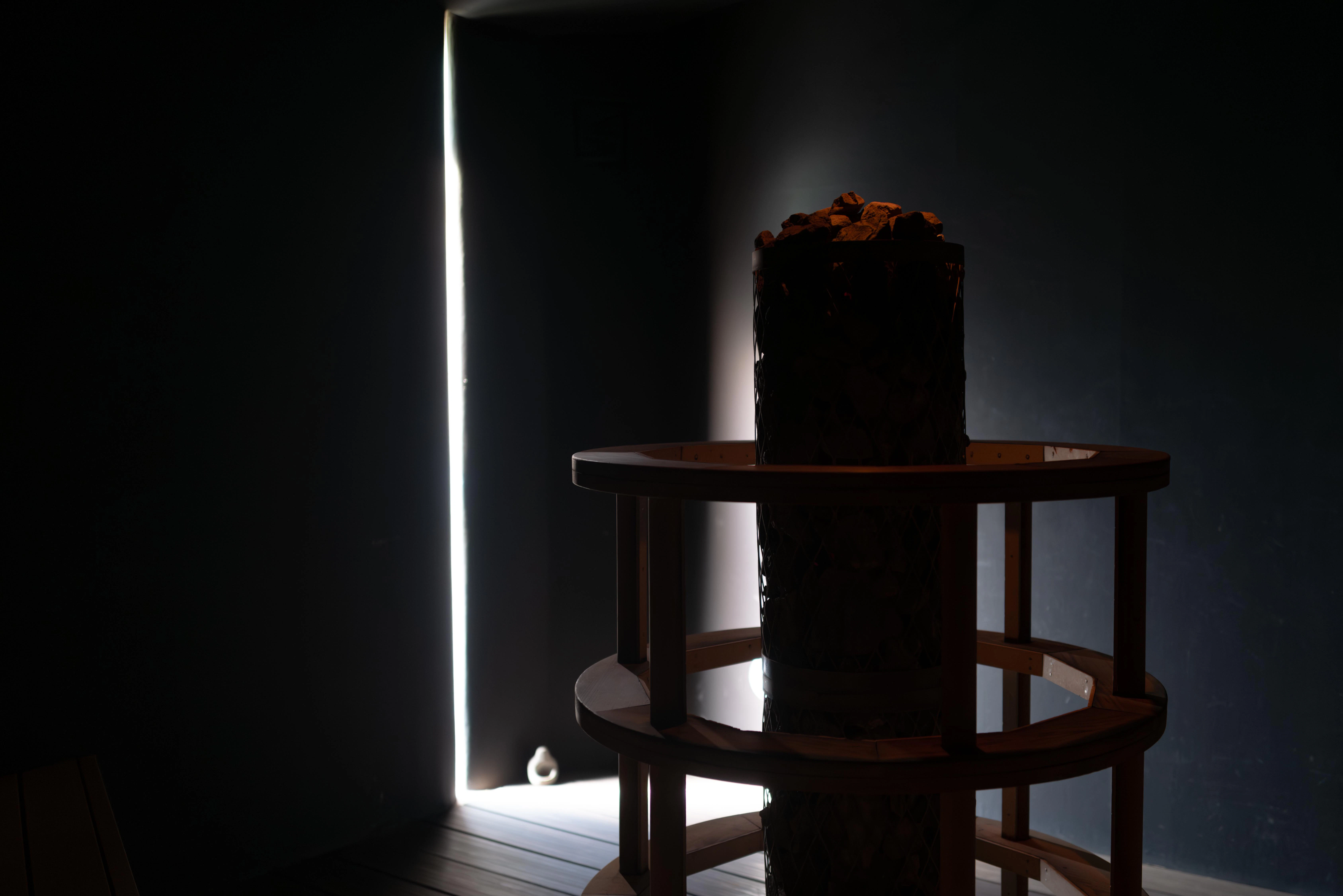 このサウナに入る光は、一筋だけ。自然光なので、時間帯によって明るさが変わるそう。