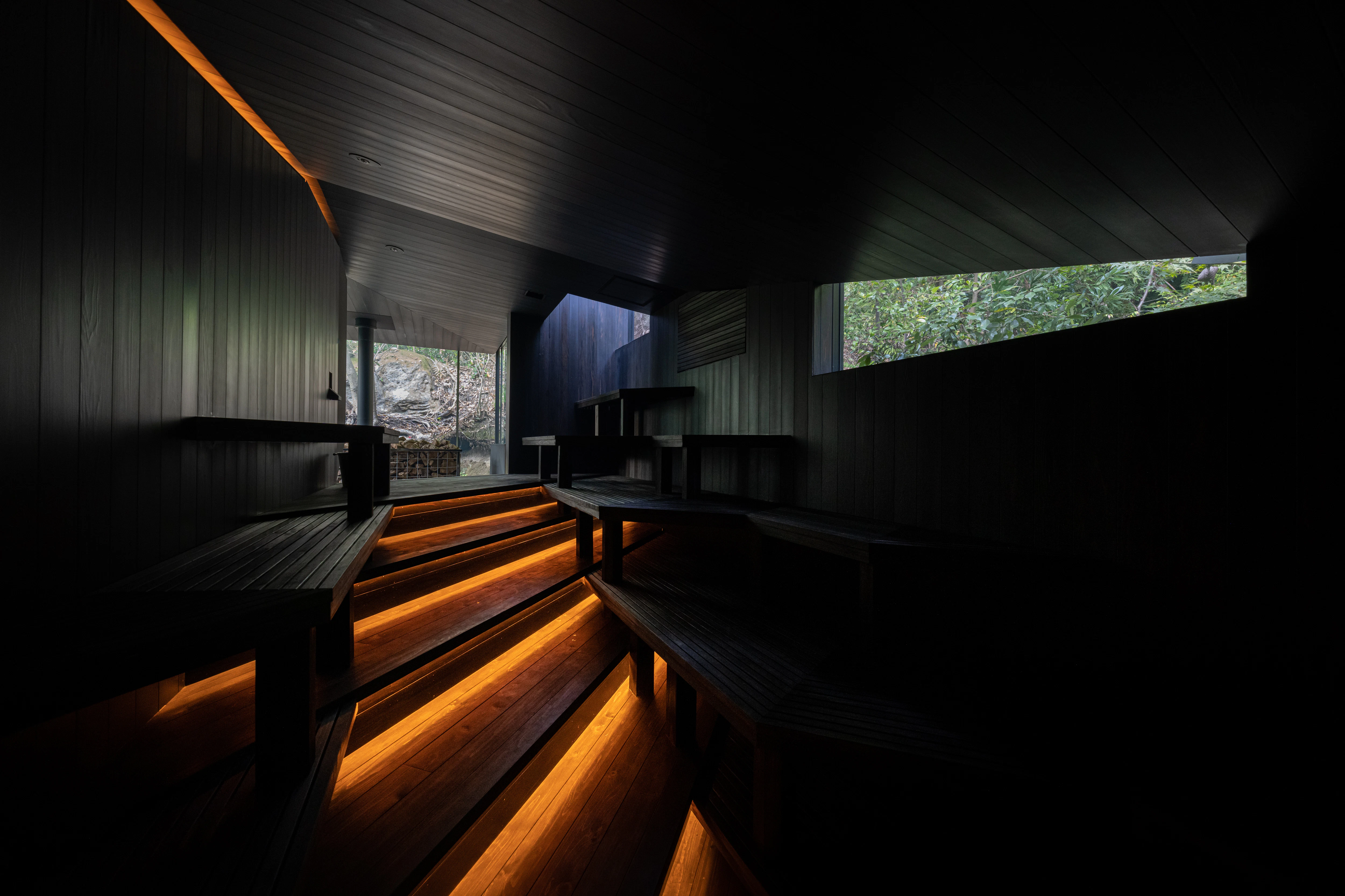 最低限の光しか入らないからこそ、五感を研ぎ澄ませてサウナに没入できると感じました。