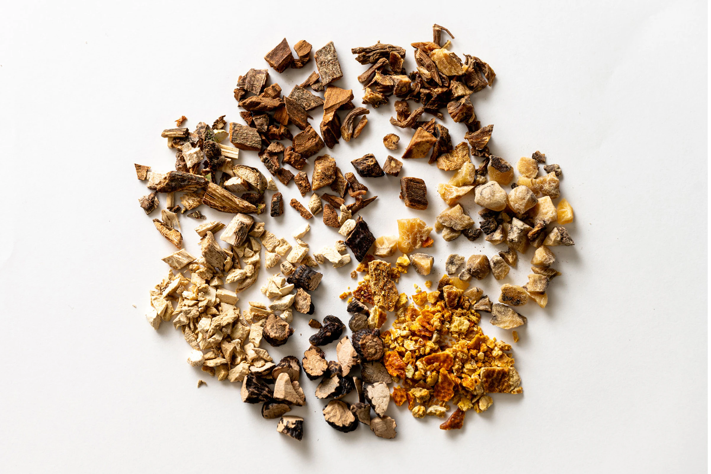 体内への吸収を早められるよう、薬草は細かく砕いています。体内に入るものなので、なるべく国産の薬草(一部海外ものを使用)を用いているのもこだわりです。完成までに2年くらいかかっているんですよ。