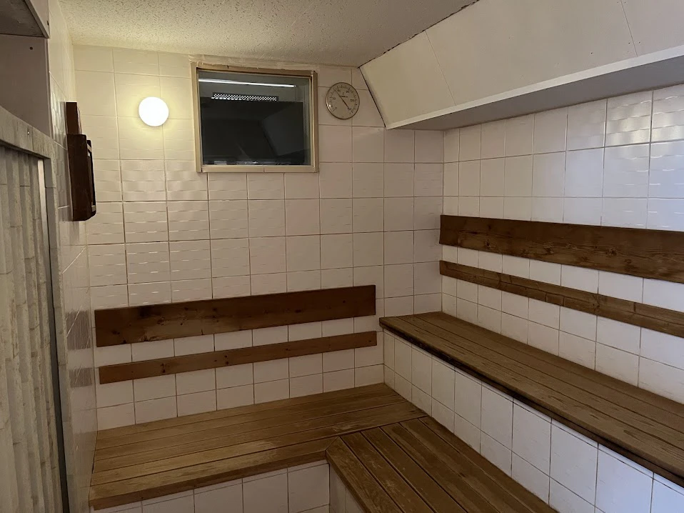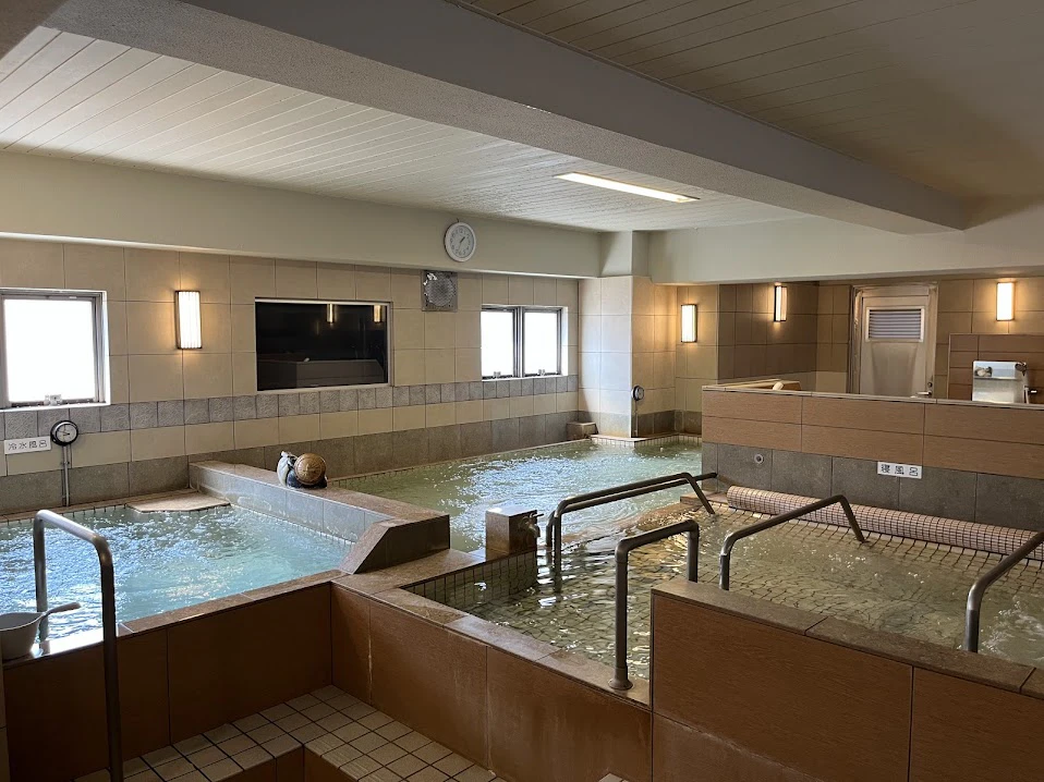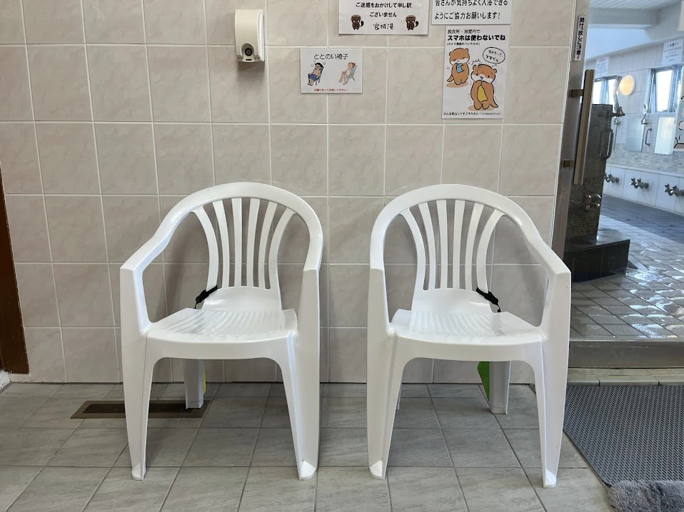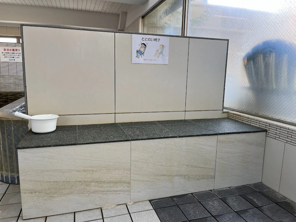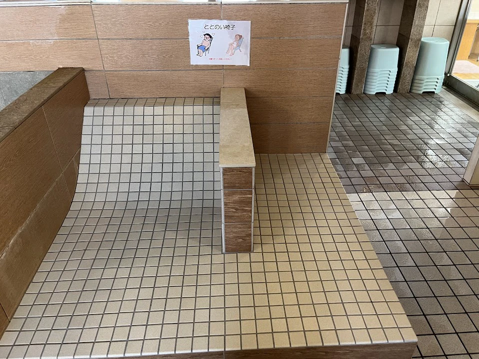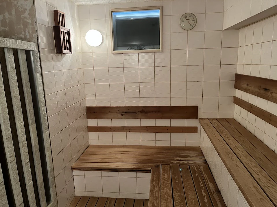 2023年に小規模リニューアルをして、壁を板張りからタイル張りに変えたそう。新しいタイルがピカピカと輝いています!通常時はテレビがついていて、番組を見ながらゆっくり過ごせます。