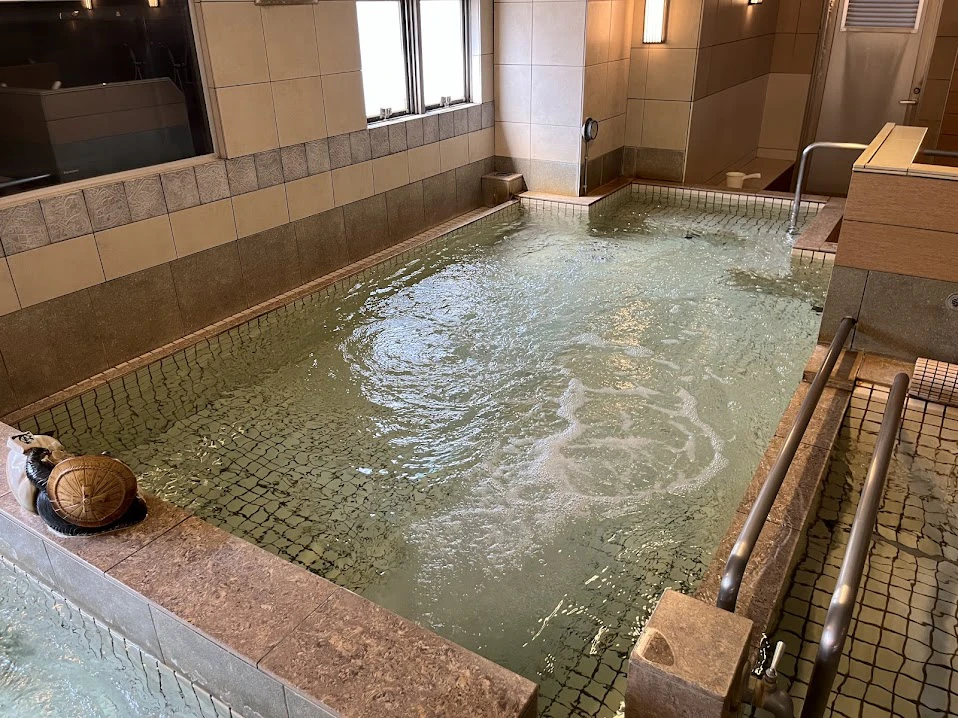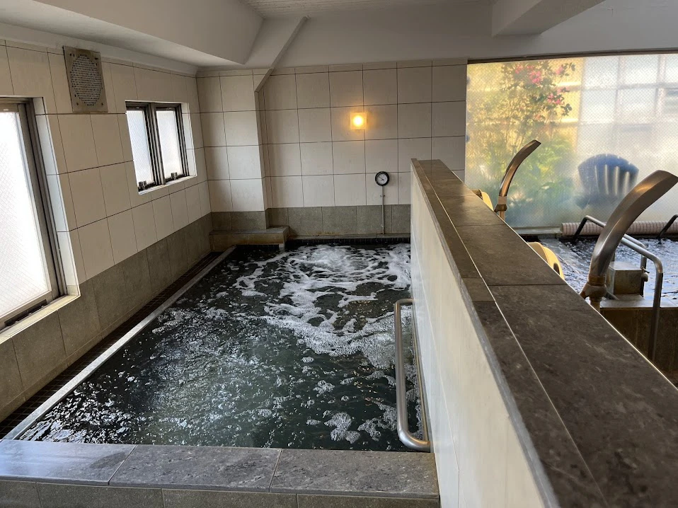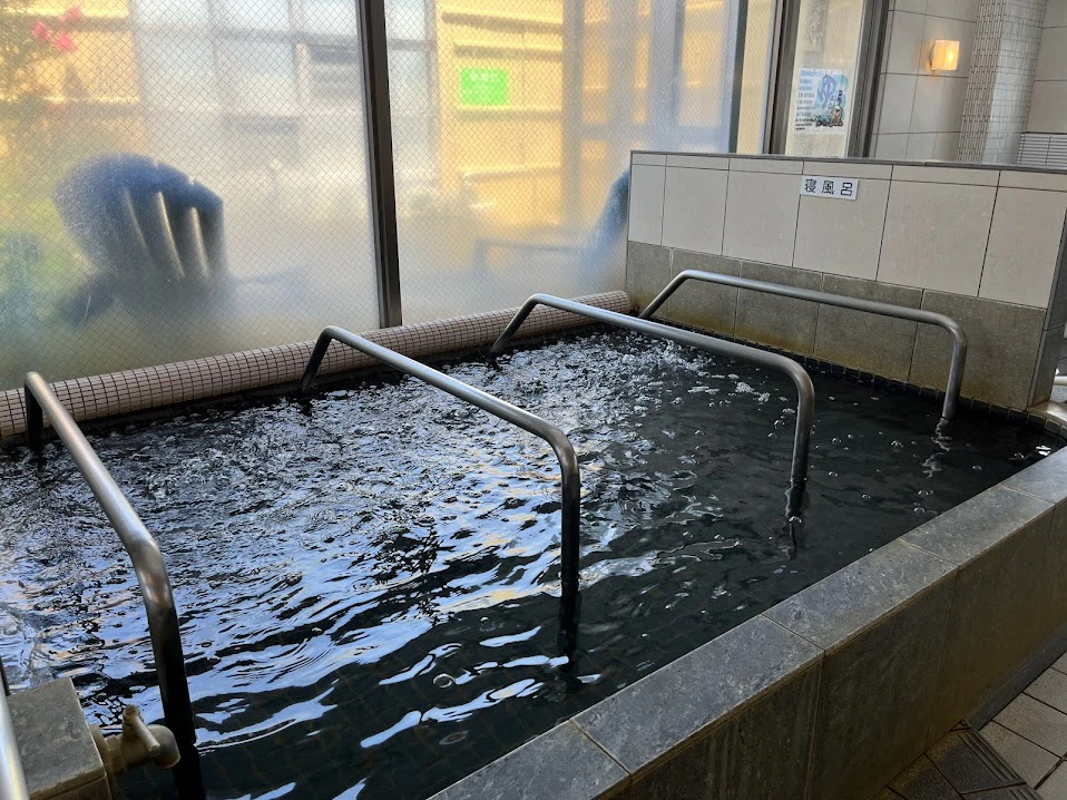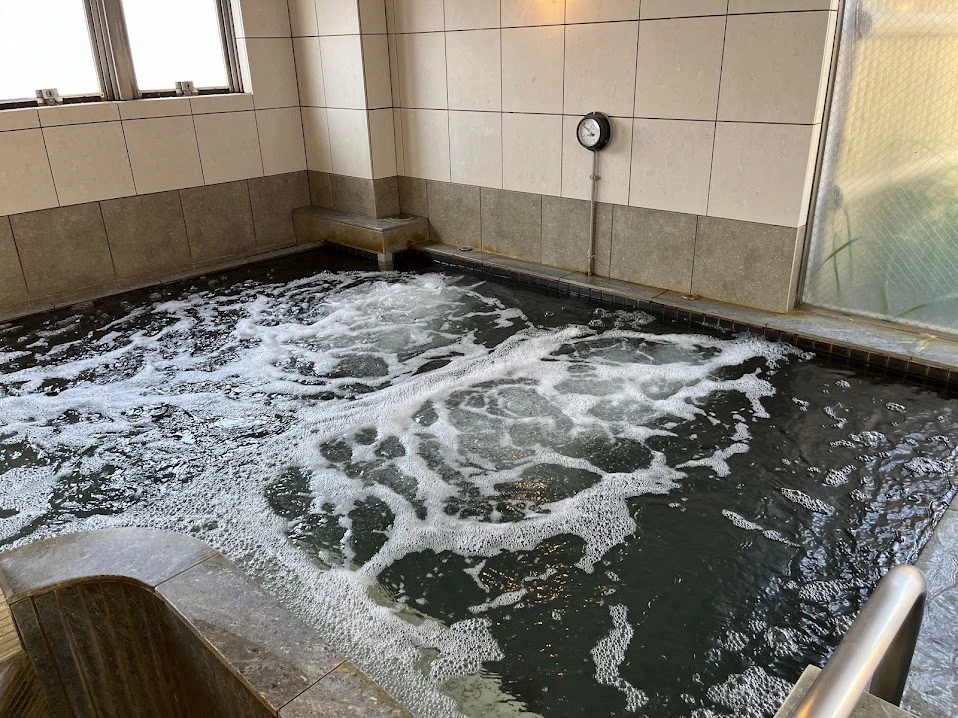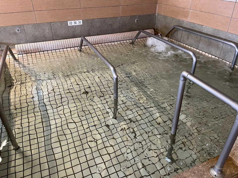奥は電気風呂になっています。温泉と電気風呂がセットの浴槽はわりと珍しいのでは?
