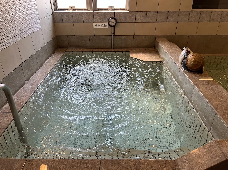 水風呂は20℃ほど。ブクブクと泡が湧き出てくるので、体感はもう少し冷たく感じられるかもしれません。実際に入ったところ、ほどよく冷たさを感じつつも体の芯はポカポカと温かさが残るような感覚で、とても気持ちよかったです!