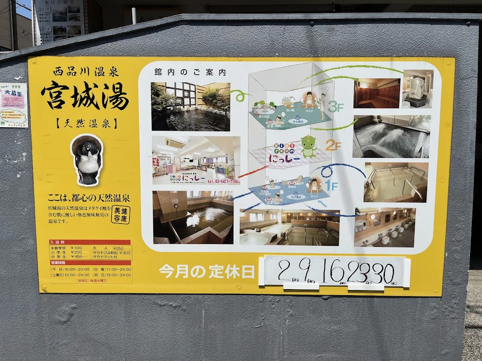 浴室は毎週木曜日に男女フロアが入れ替わります。その日のお風呂は、入口横の看板や公式サイトでもチェックできますよ。