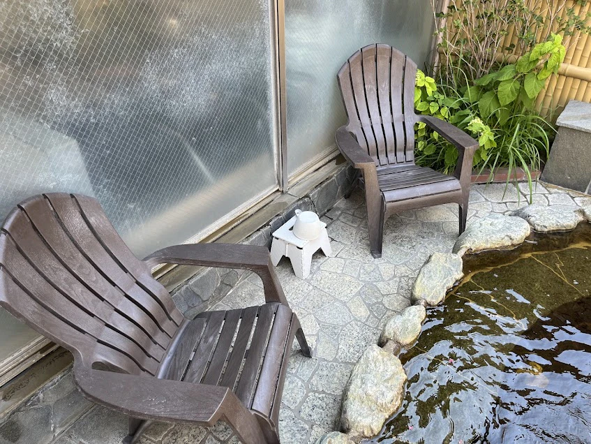 露天風呂の温度は通常40℃前後ですが、夏の限定イベントの間は34℃前後になるそうです。入りやすい温度でありがたいですね〜!