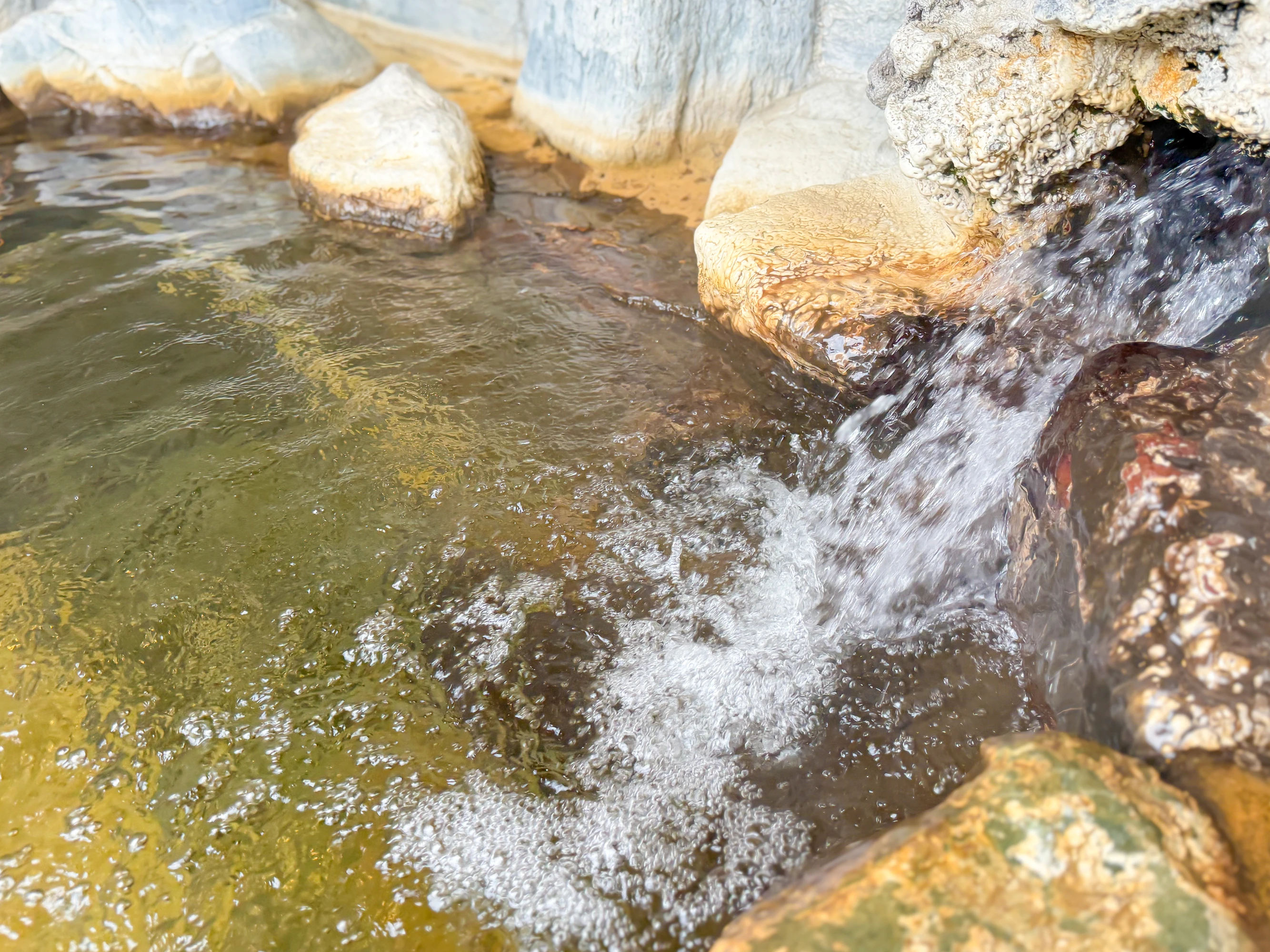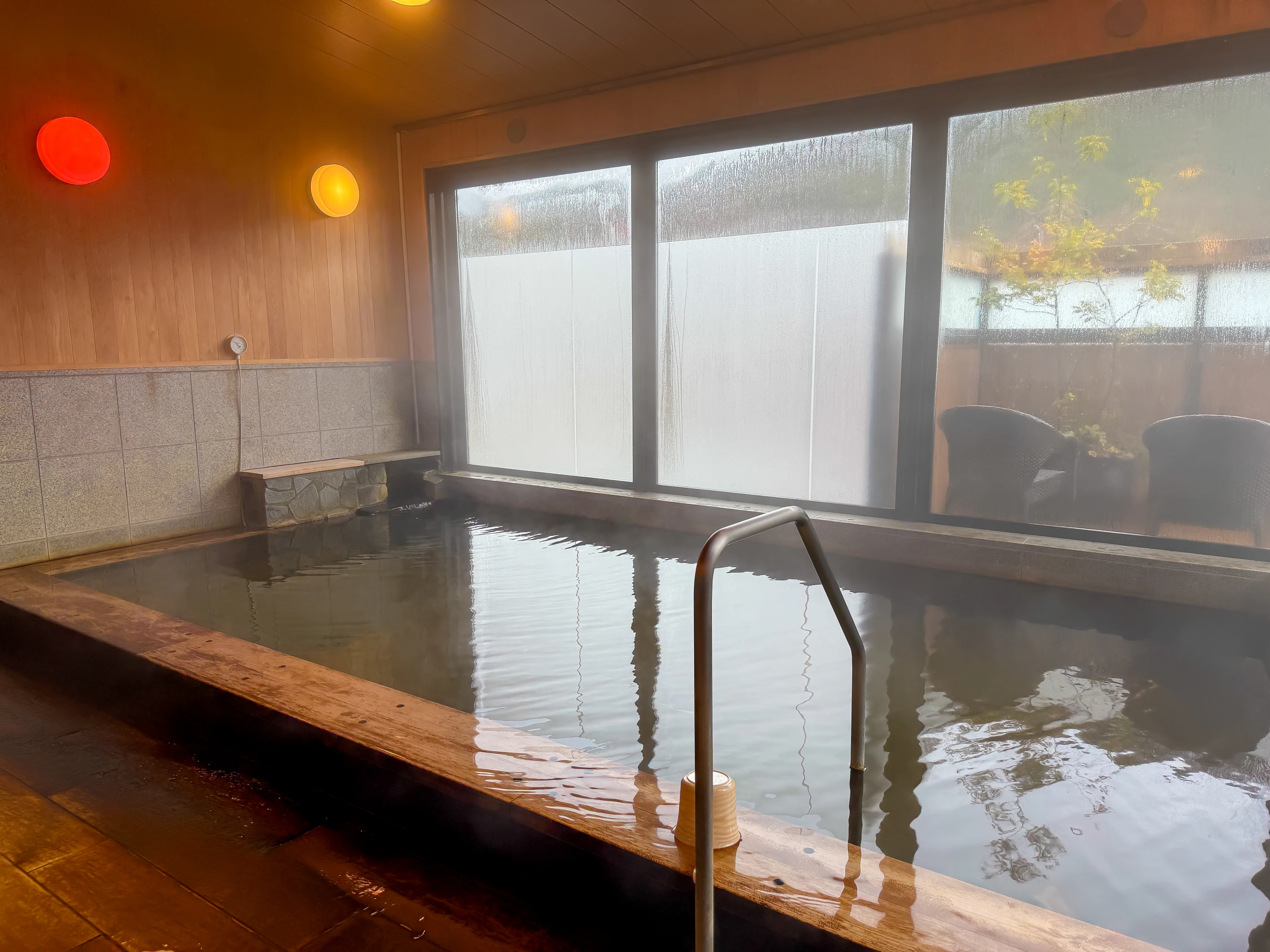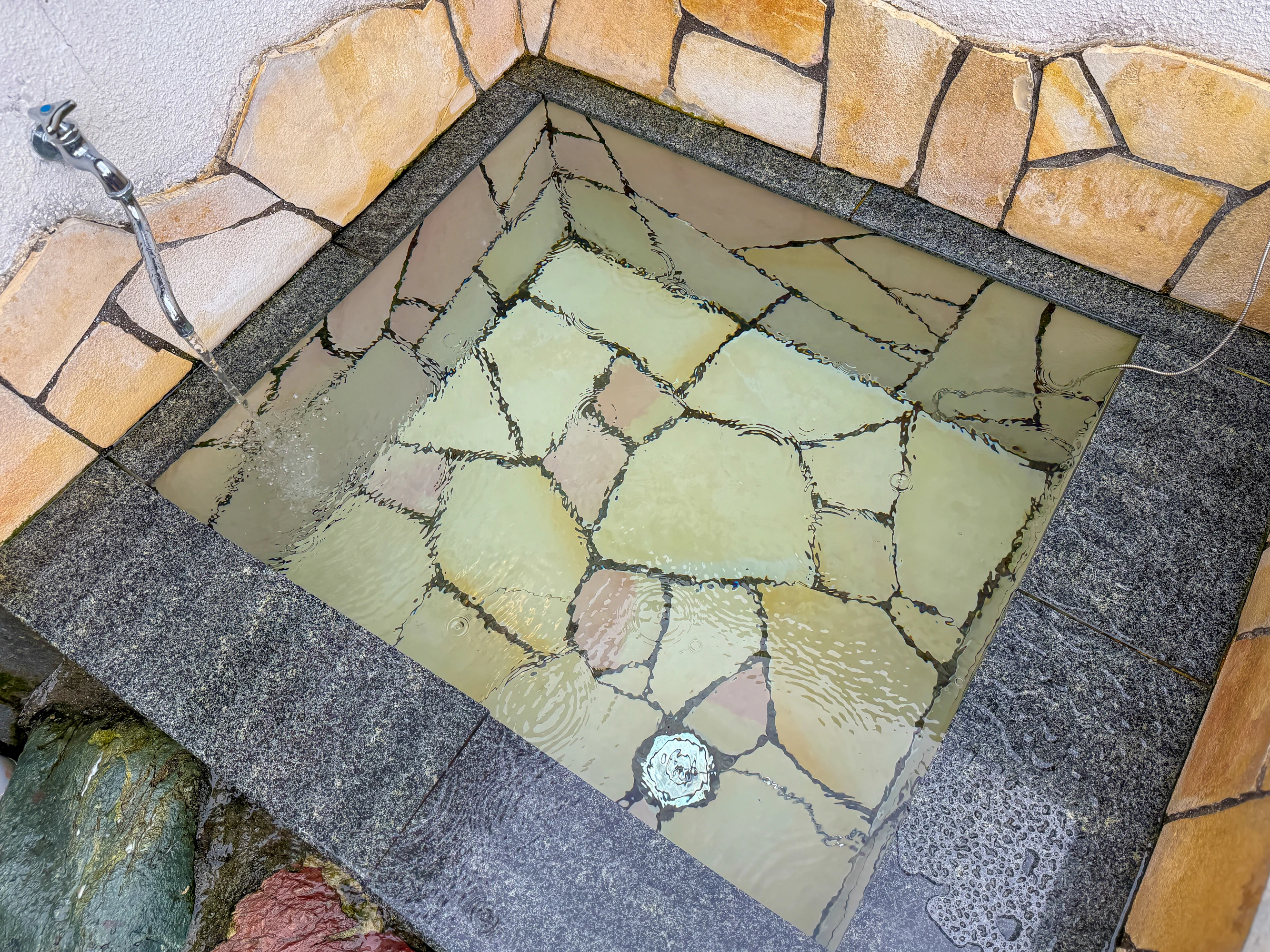 温泉の香りはほとんどありませんが、色味はうすく茶褐色のように感じられました。