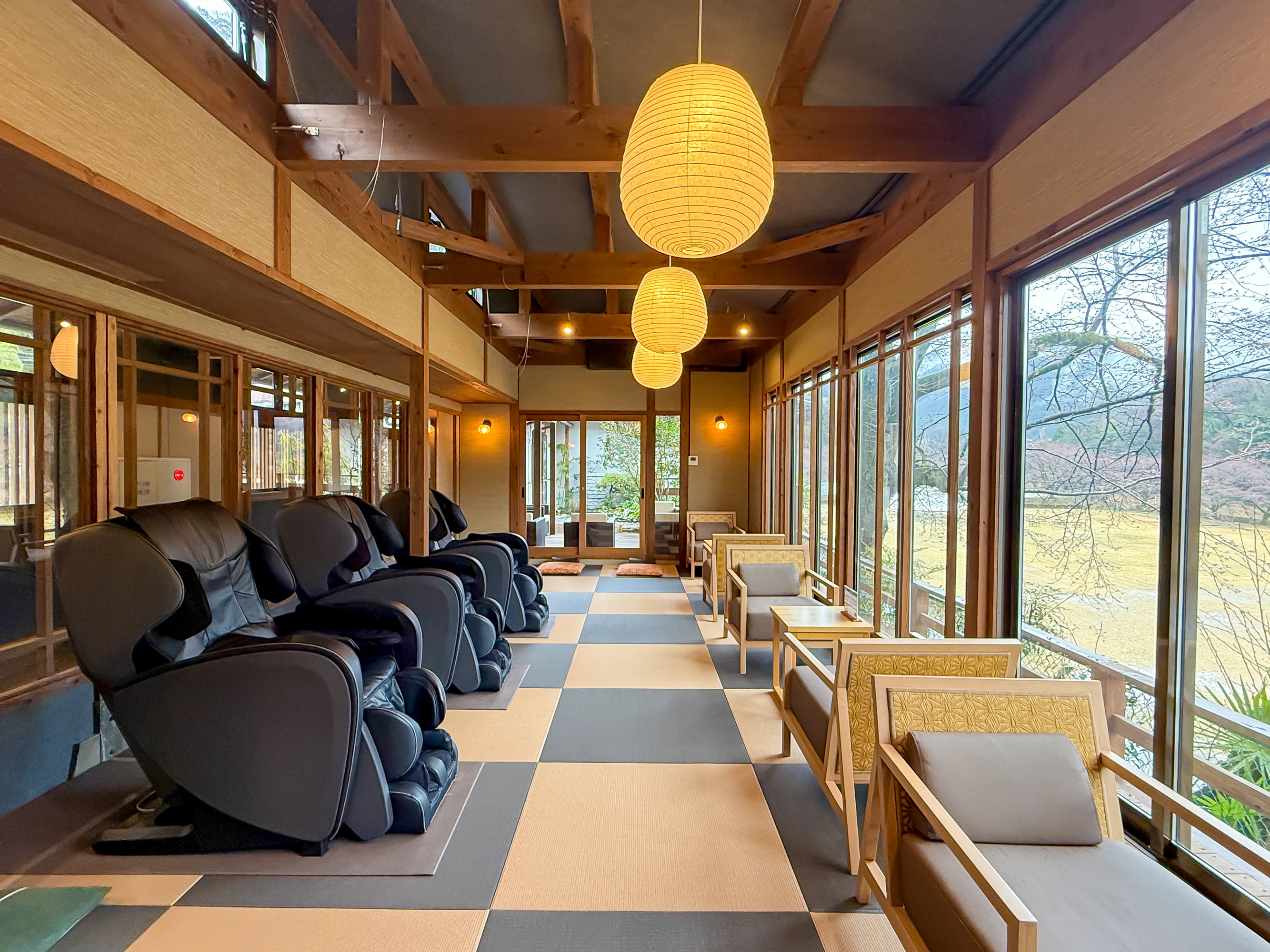 畳の肌触りが心地いい「琉球畳の間」には、無料で使用できるマッサージマシンが!温泉とサウナでほぐれた身体をさらにリラックスさせてくれます。