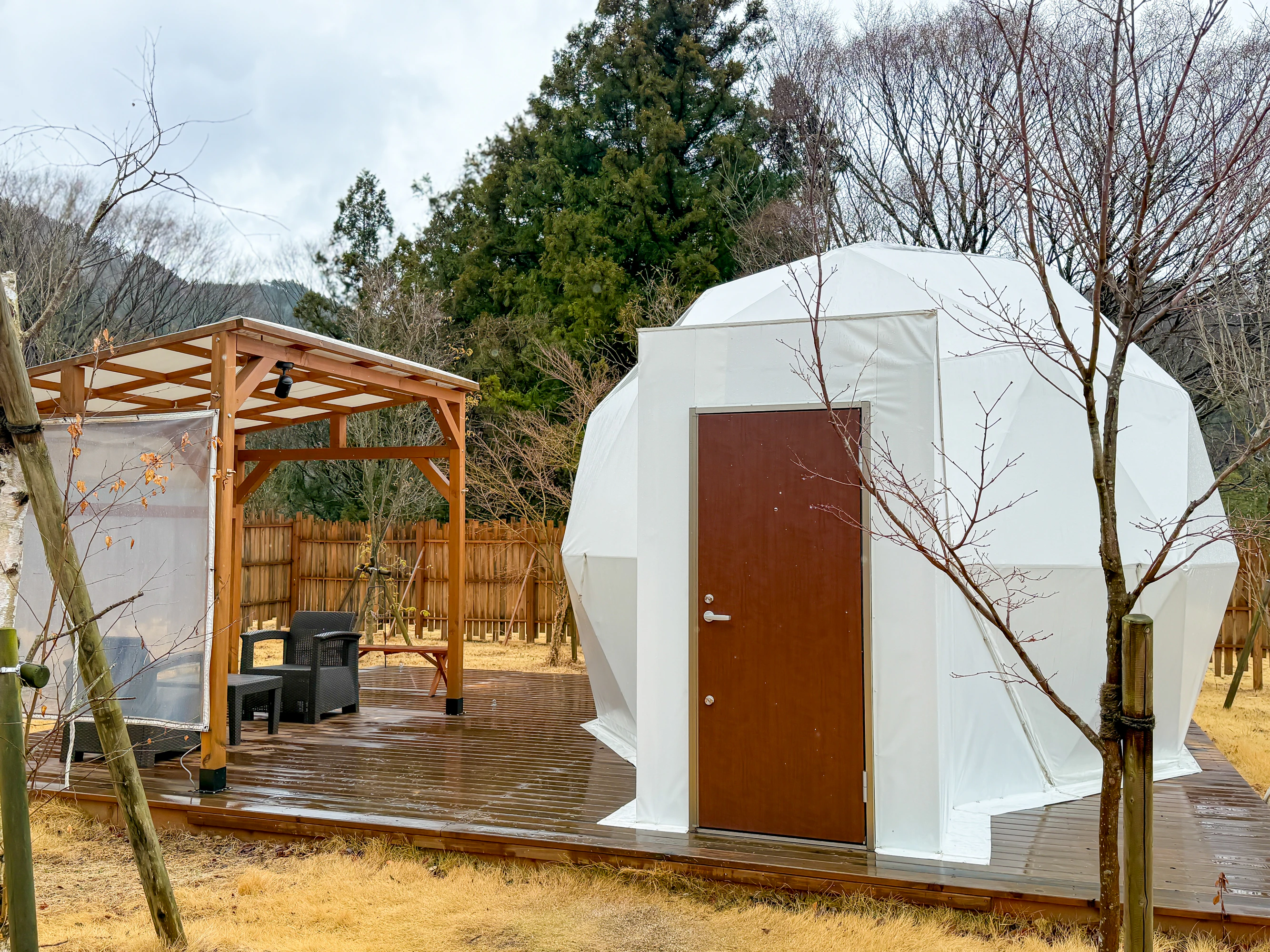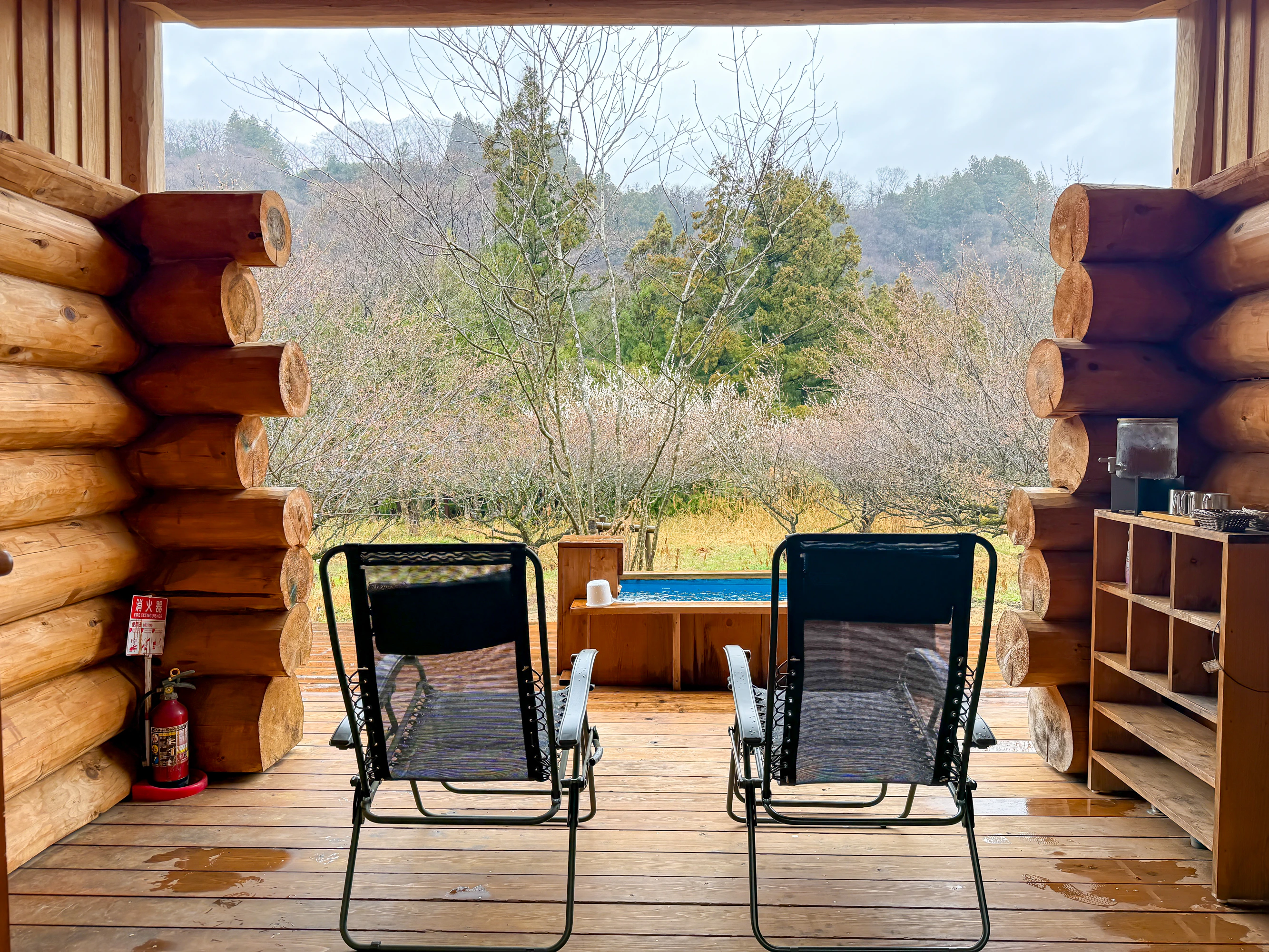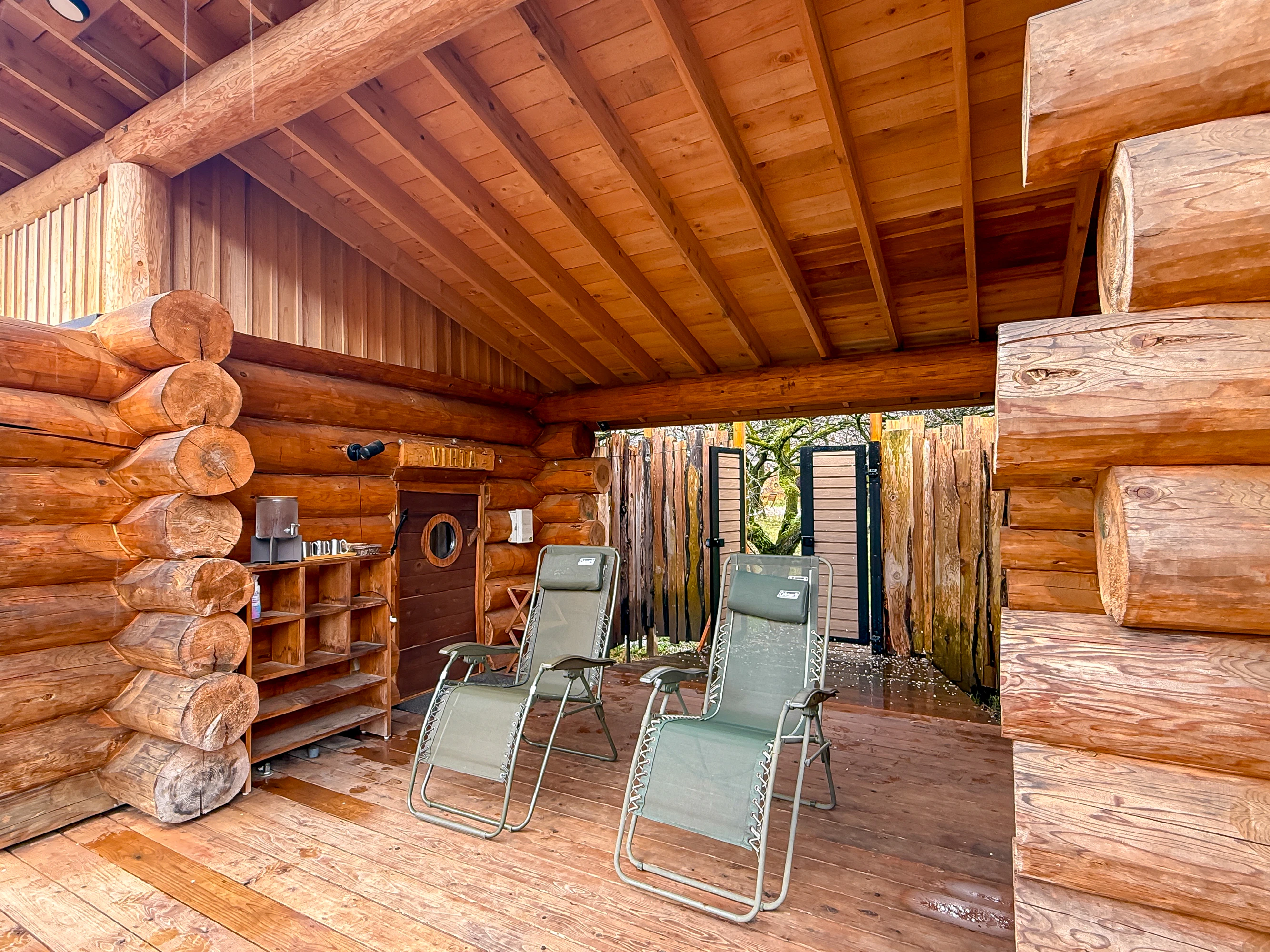 体験日は雨模様でしたが、屋根付きの休憩スポットも用意されているので、雨を気にせず満喫できました!アウトドアサウナの弱点をすべて回収していてすごいな、ここ。
