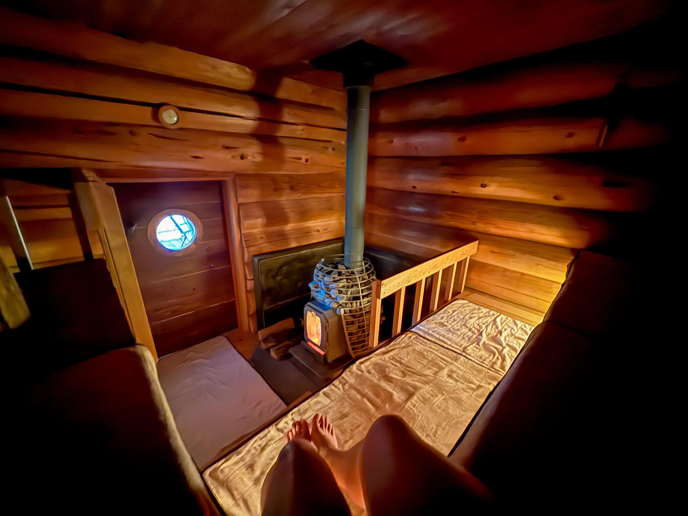 ログサウナの温度は、80〜90度ほど。薪サウナ特有のまろやかな熱がじんわり身体を温めてくれて、汗と一緒にドロドロとした気持ちが溶け出すような感覚に。