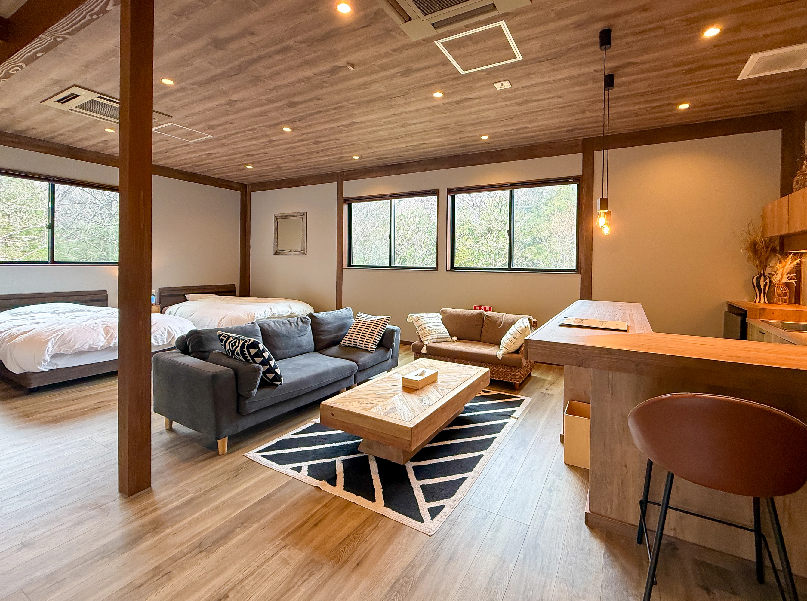 無音の室内には、薪がぱちぱちと燃える音や鳥のさえずりが響き、五感のすべてで「癒し」を体感できます。もう、ずっとここにいたい…!