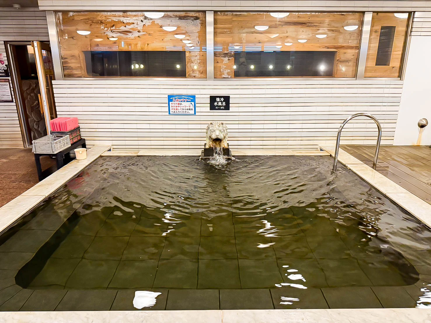 背面の冷やしのあとは、サウナ室を出て水風呂へ。