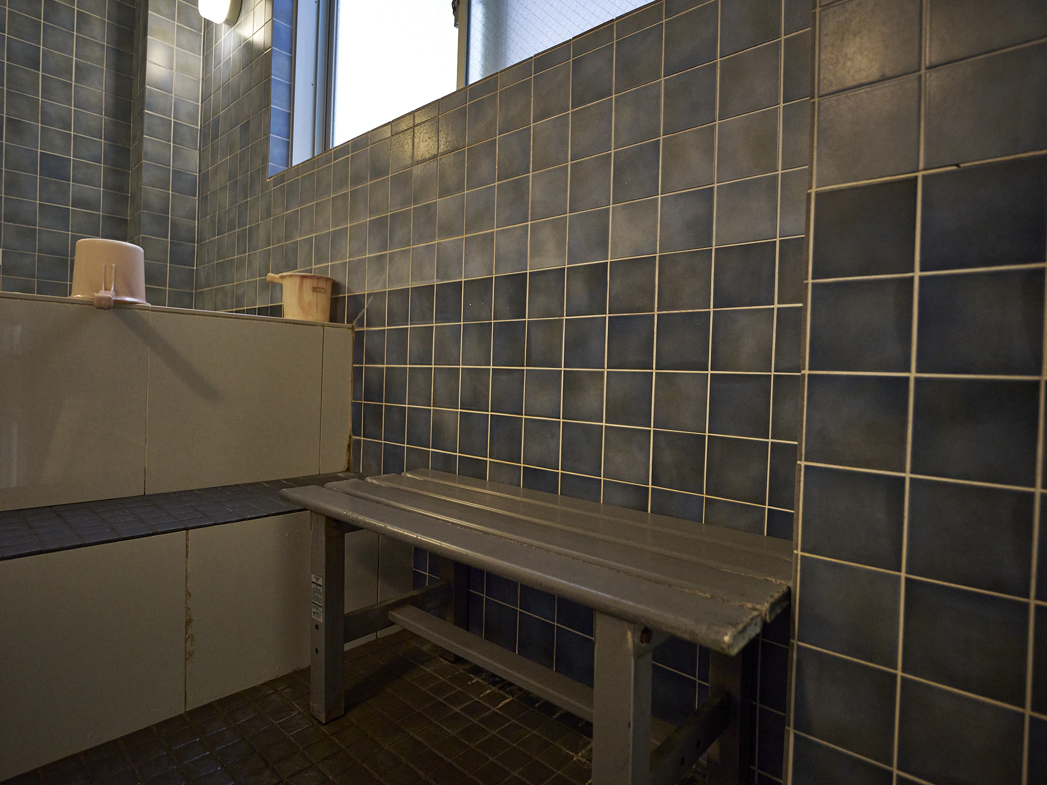 奥は日替わりの薬風呂。この日は「江戸黒」というお風呂でした。美容成分が入った黒褐色のお風呂で、見るからに肌によさそうでした。