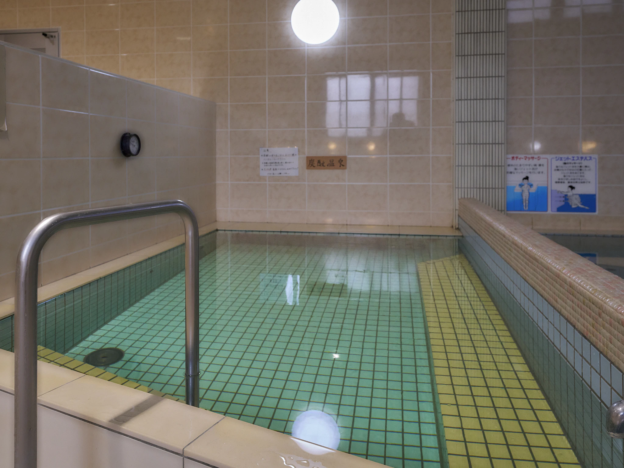 ややぬるめの温度設定で、じっくり入って体が温まるとお客さんから人気が高い炭酸温泉。実際に入ってみると、思ったよりもやわらかな入り心地で、じんわりとあたたまりました。
