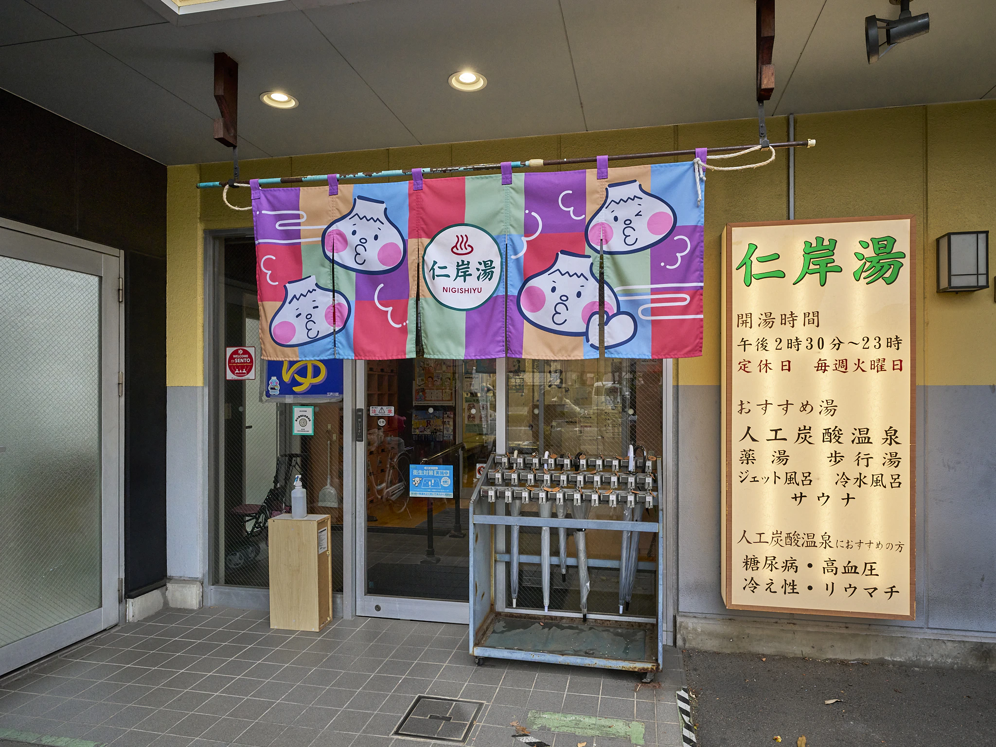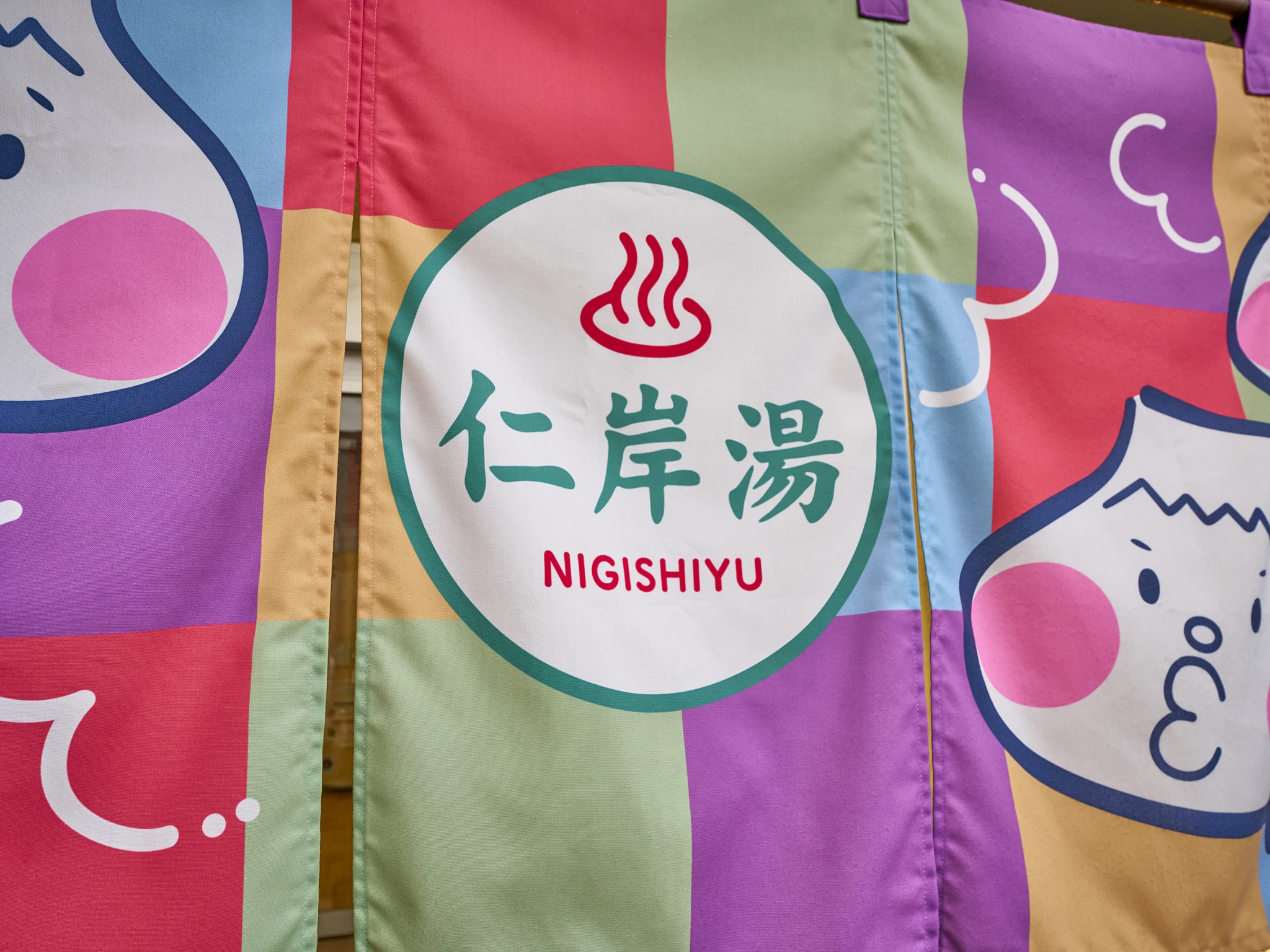 暖簾には江戸川区のゆるキャラ「お湯の富士」くんのイラストが描かれています。かわいいです!江戸川区内でも数少ないレアな暖簾だそう。
