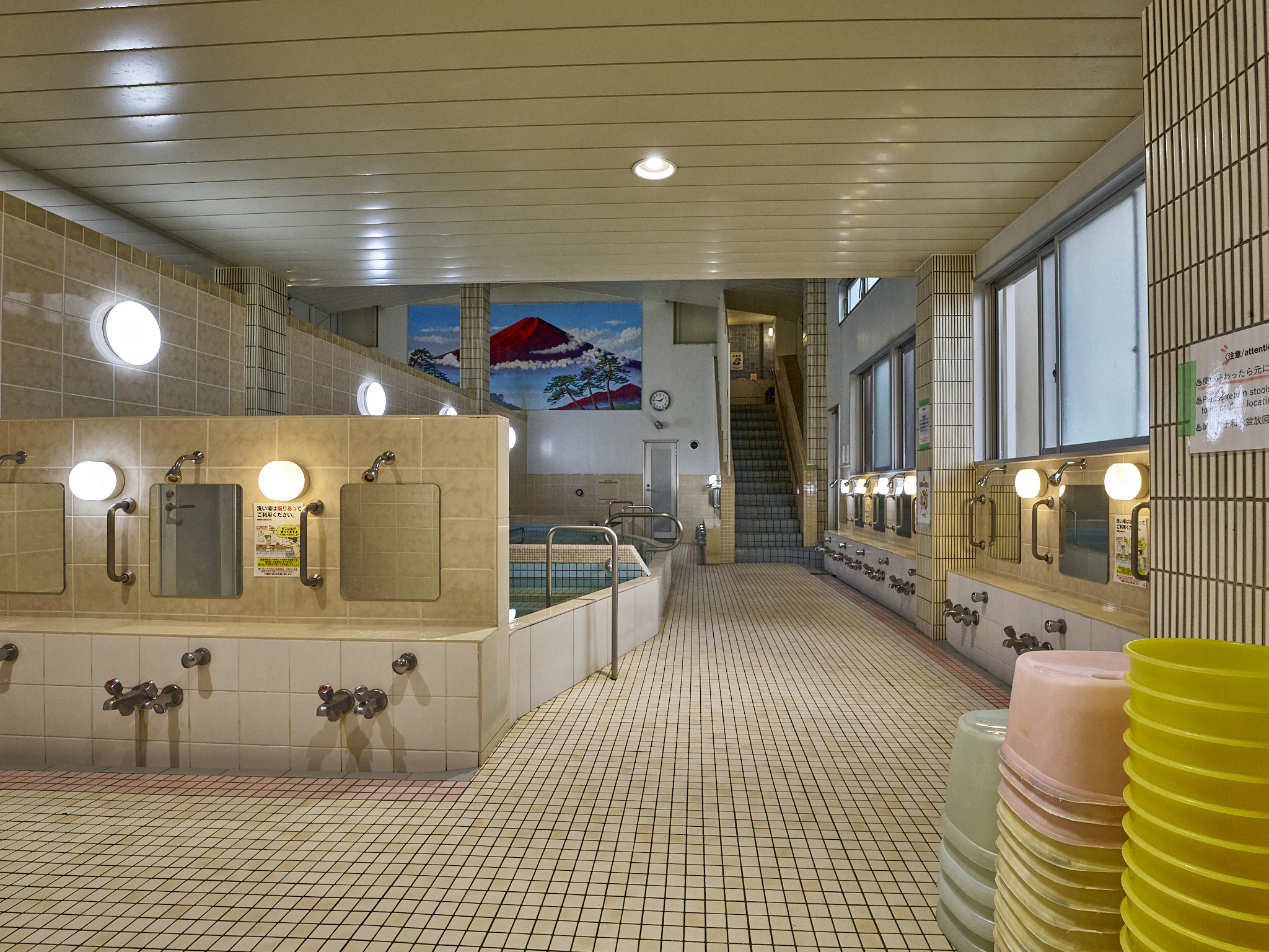 取材当日は平日でしたが、開店直後に入ってきた人の数は、なんと30人ほど!みなさん行列をなし、一番風呂を楽しみに待っていました。