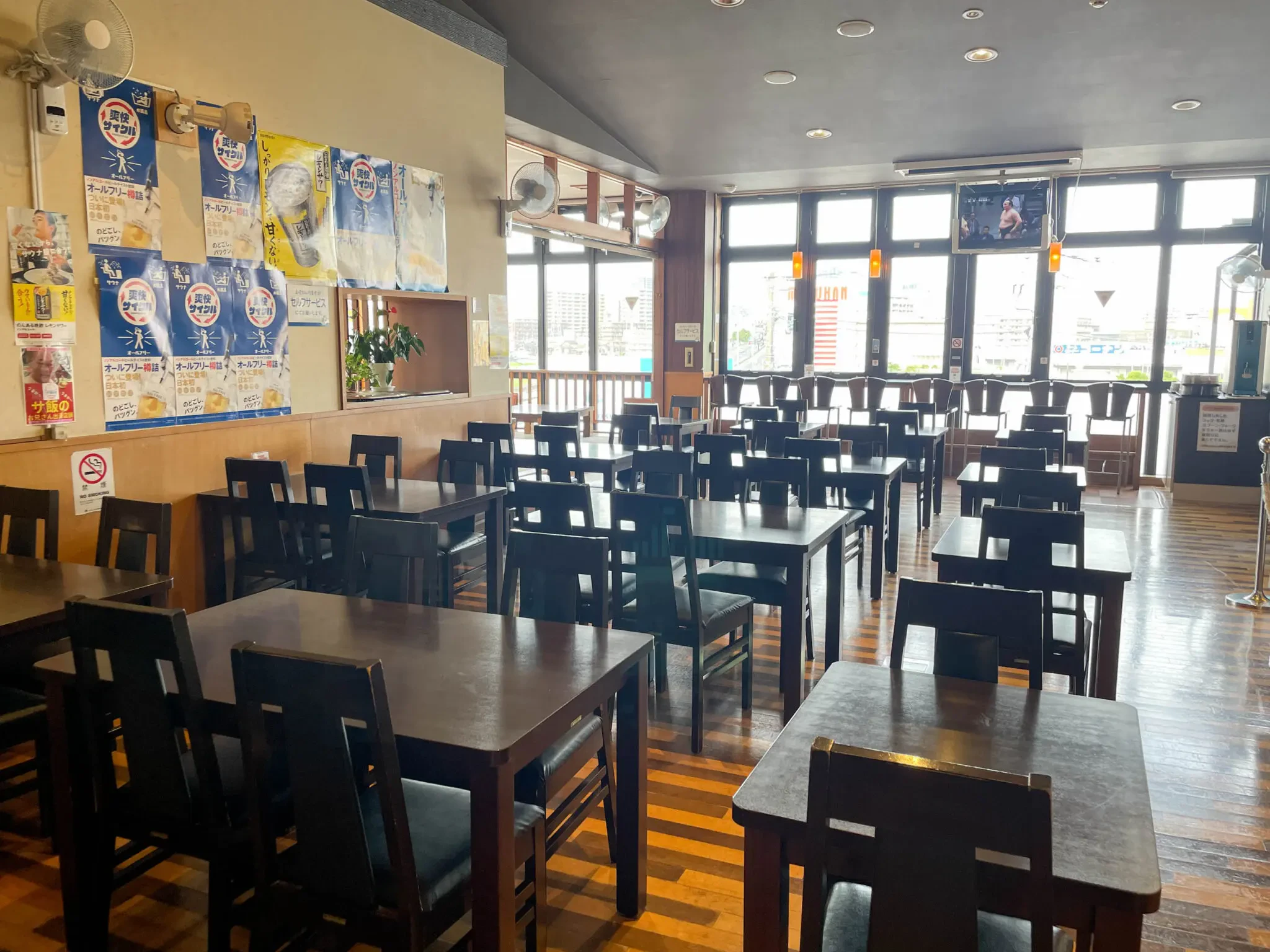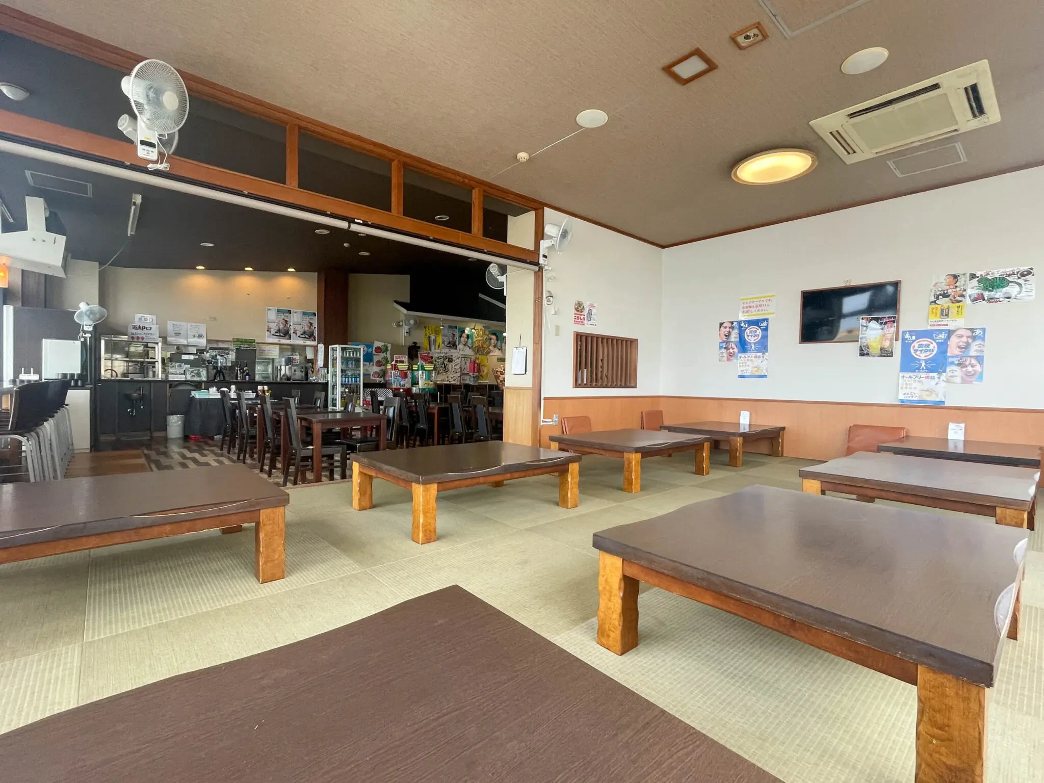 入り口横に位置する食堂は、空間に仕切りがなくひとりでもふらりと入れる雰囲気。テーブル席に、カウンター、畳のお座敷スペースと、好みにあった席でのんびり食事とお酒を楽しめるのがうれしいです。