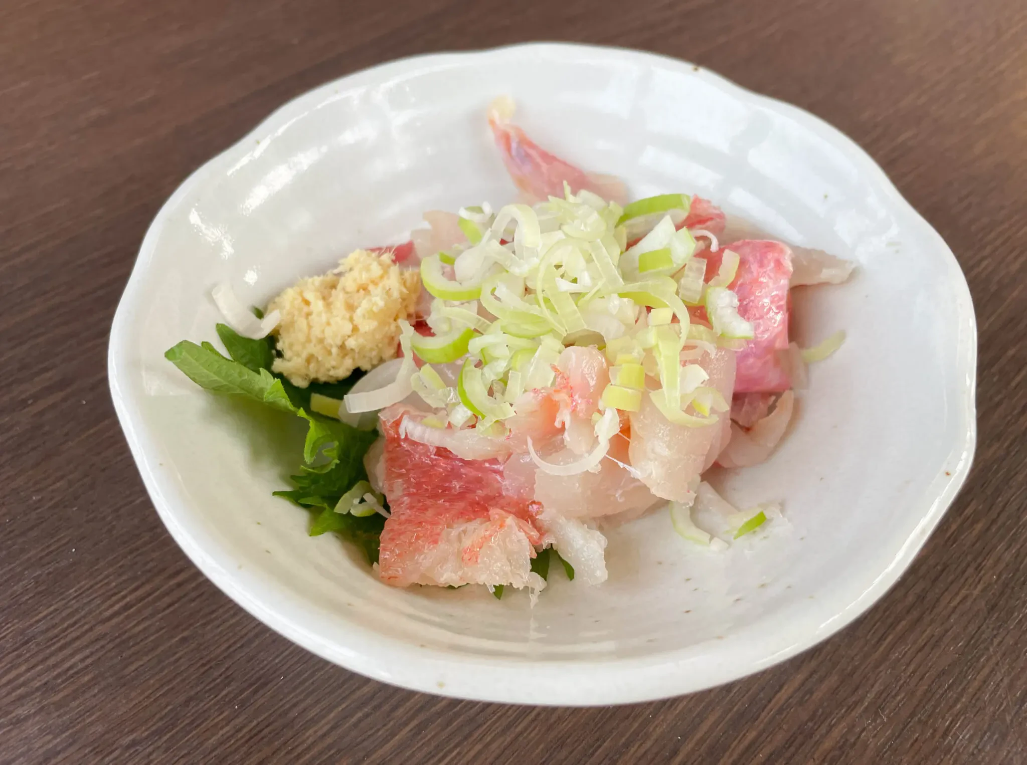 とくにこの"キンメダイの湯引き"。歯応えがあっておいしいです。もうおふろの国に来たら、キンメ・ニラ・牛のさいばし、この3つで決まりじゃないですかね」と濡れ頭巾ちゃん。