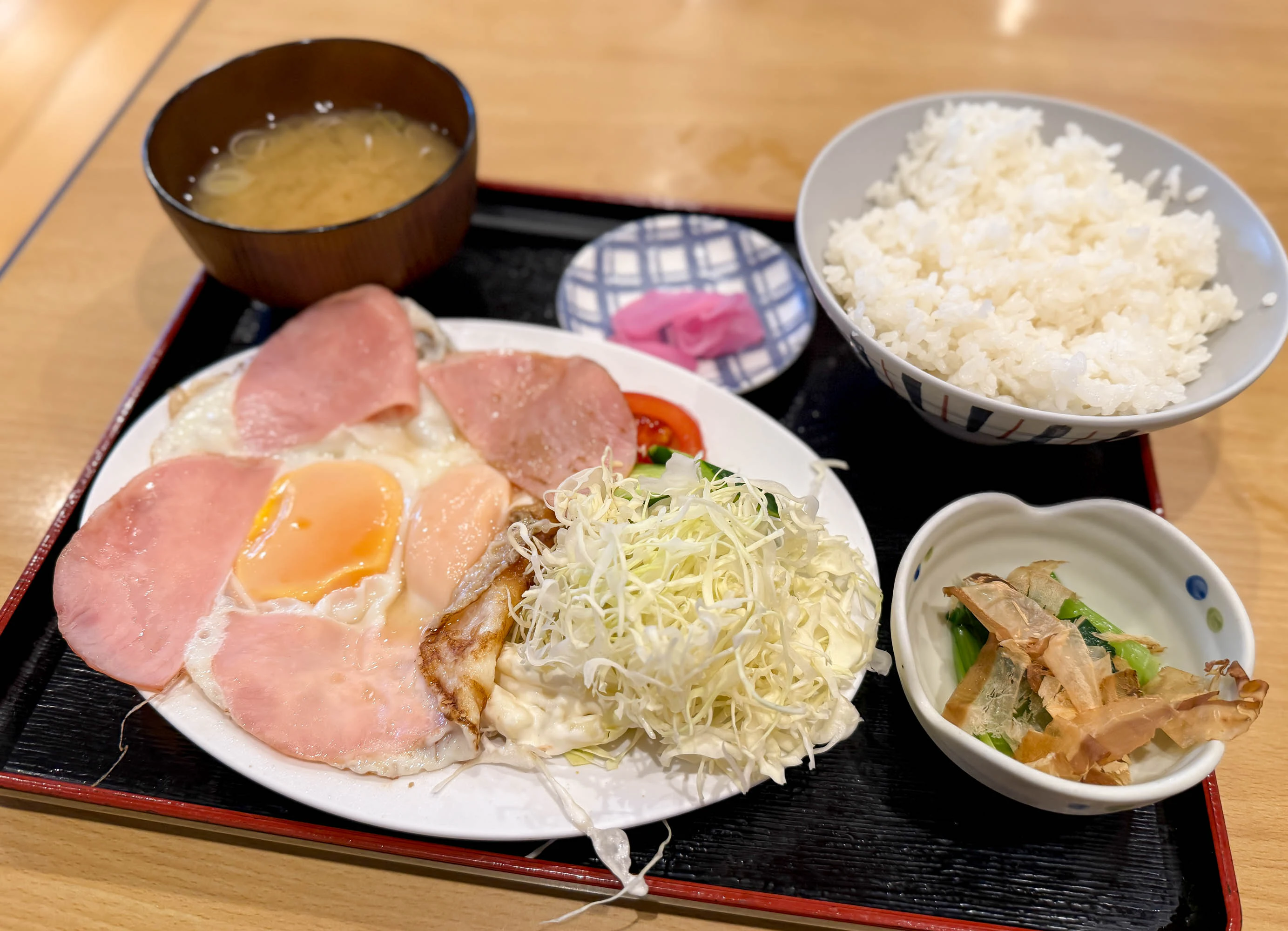 もちろん食事も満喫!わたしは"サウセンといえばコレ"と言われている「ハムエッグ」を定食にして注文。もちろん単品も可能で、お酒のおつまみに注文している方も多かったです!