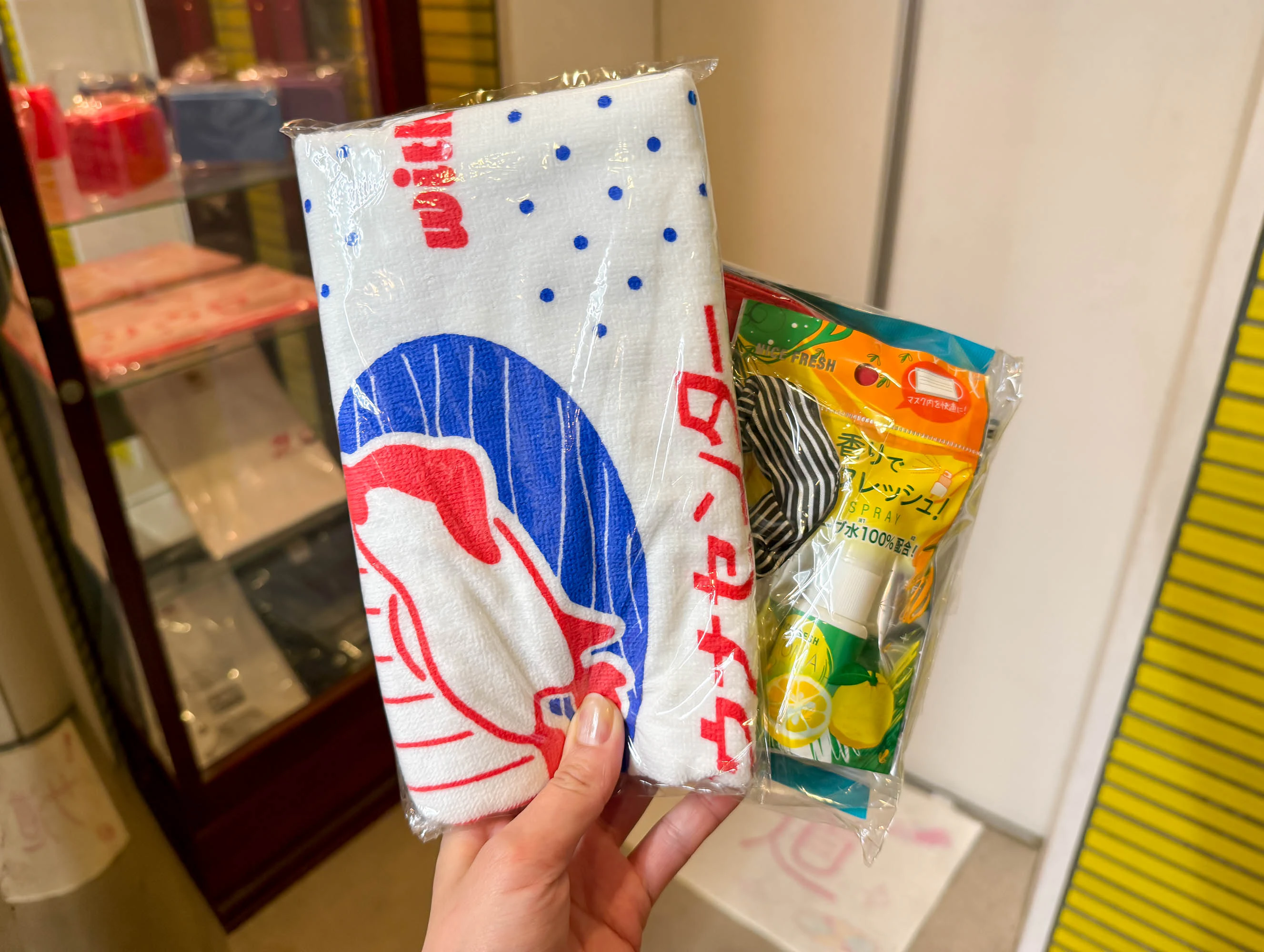 受付では「サウナセンター」と「Chill+」がコラボしたオリジナルタオル、シュシュや休足シートなどが入ったギフトセットまでもらえました!特に感動したのは、ギフトセットの中に移動用に使えるミニポーチが入っていたこと。