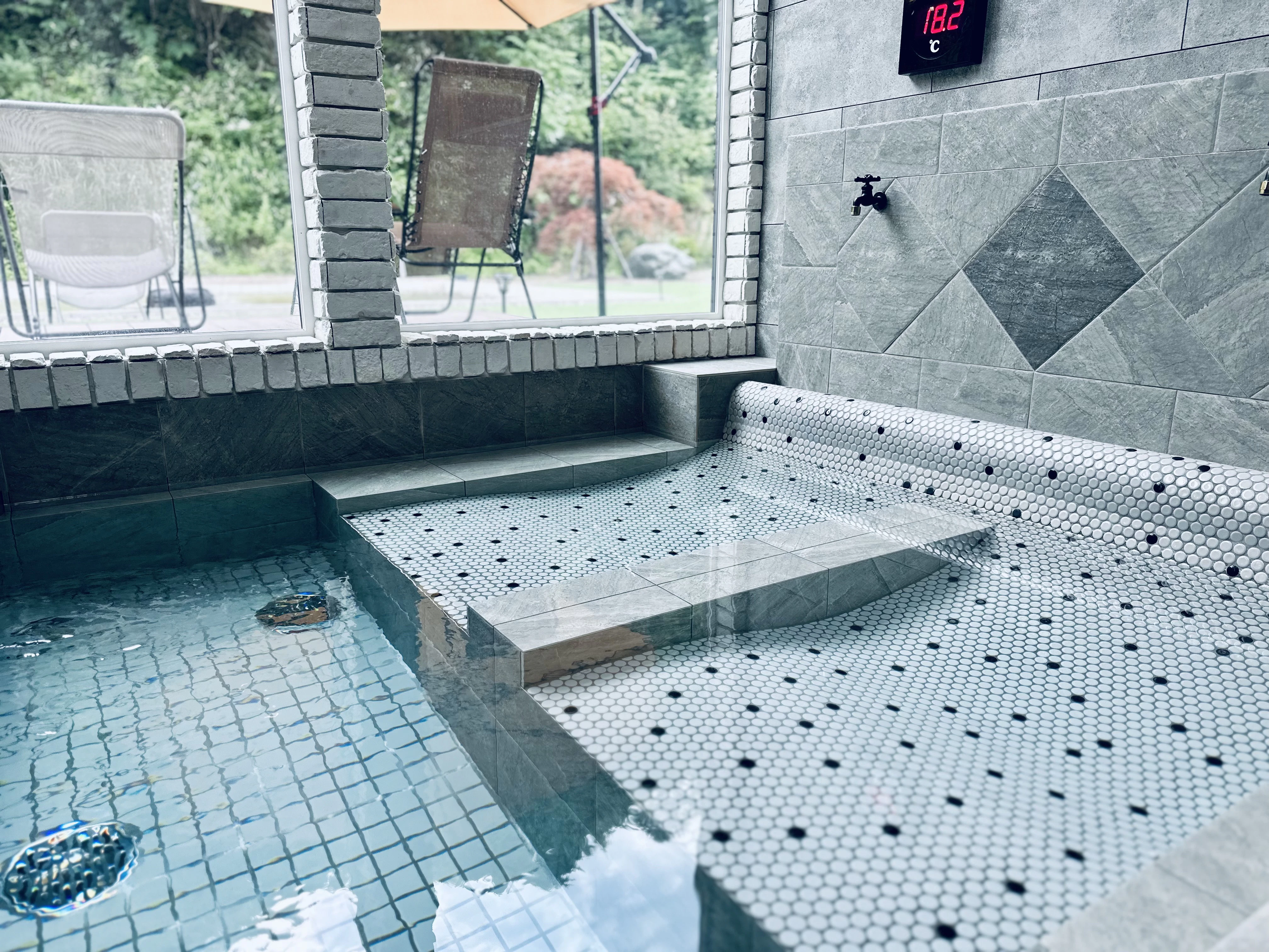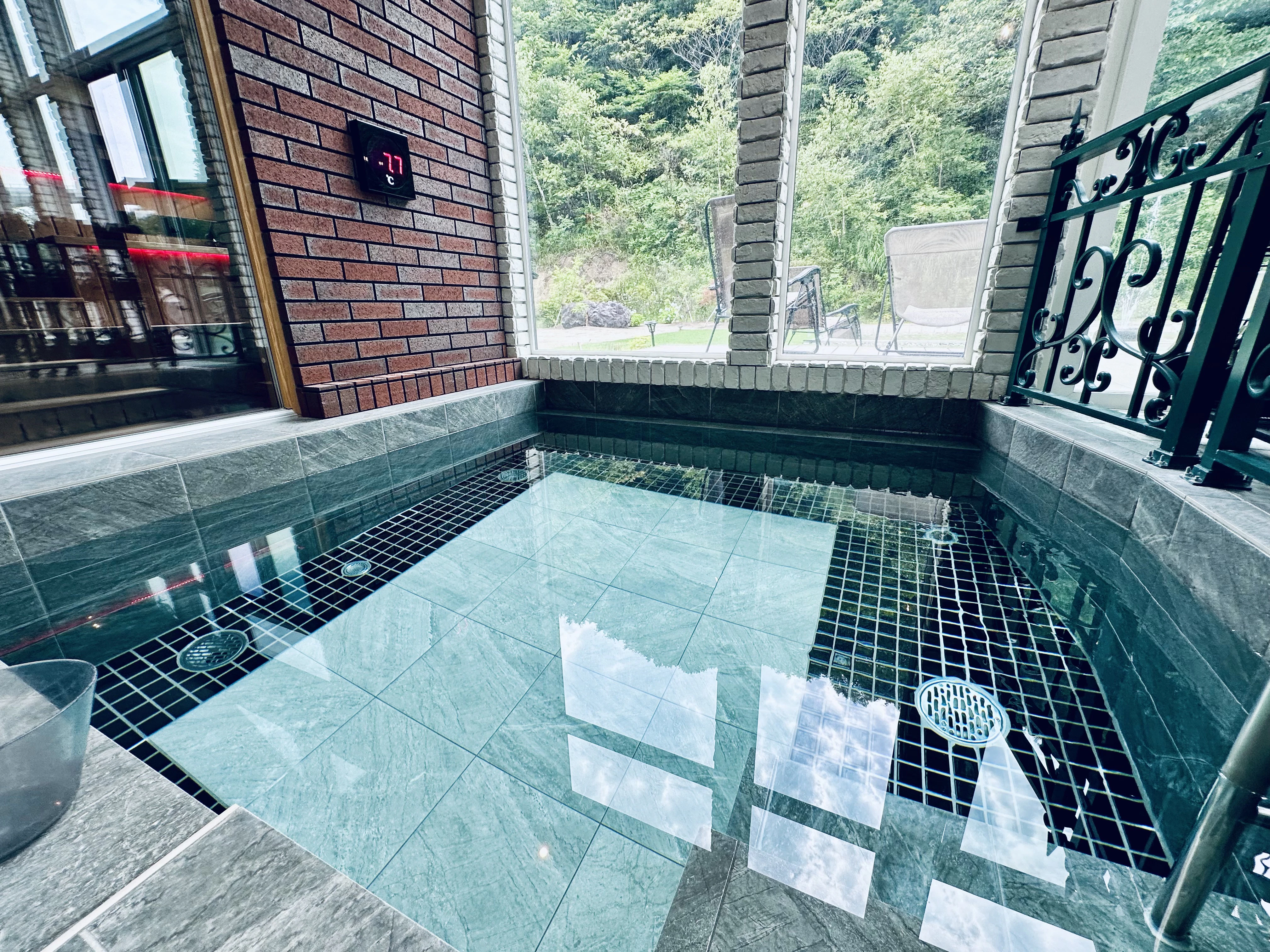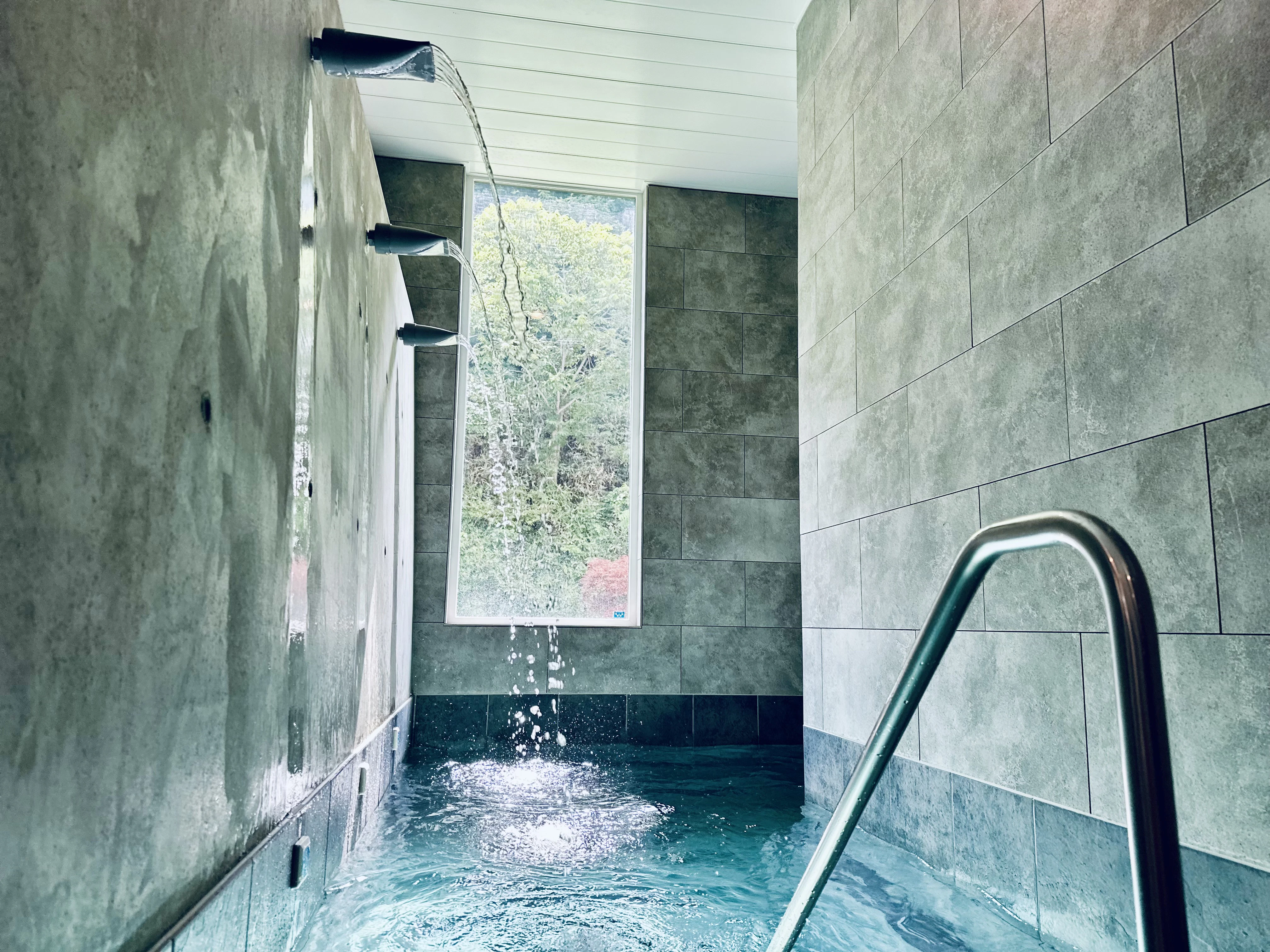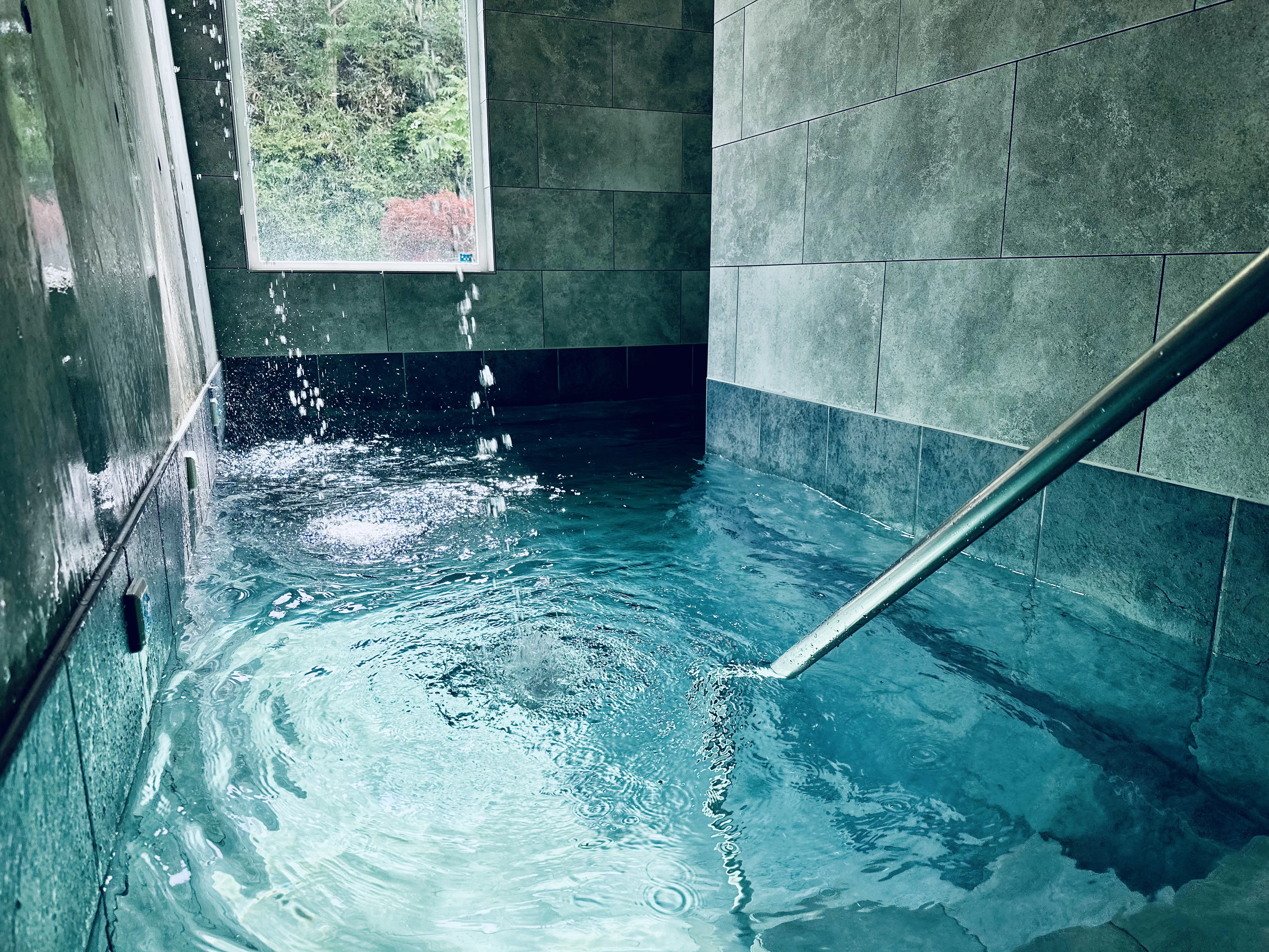 たまらず水風呂〜と思ったら、なんと室内にあるんです。これはうれしい動線...そして面白い!