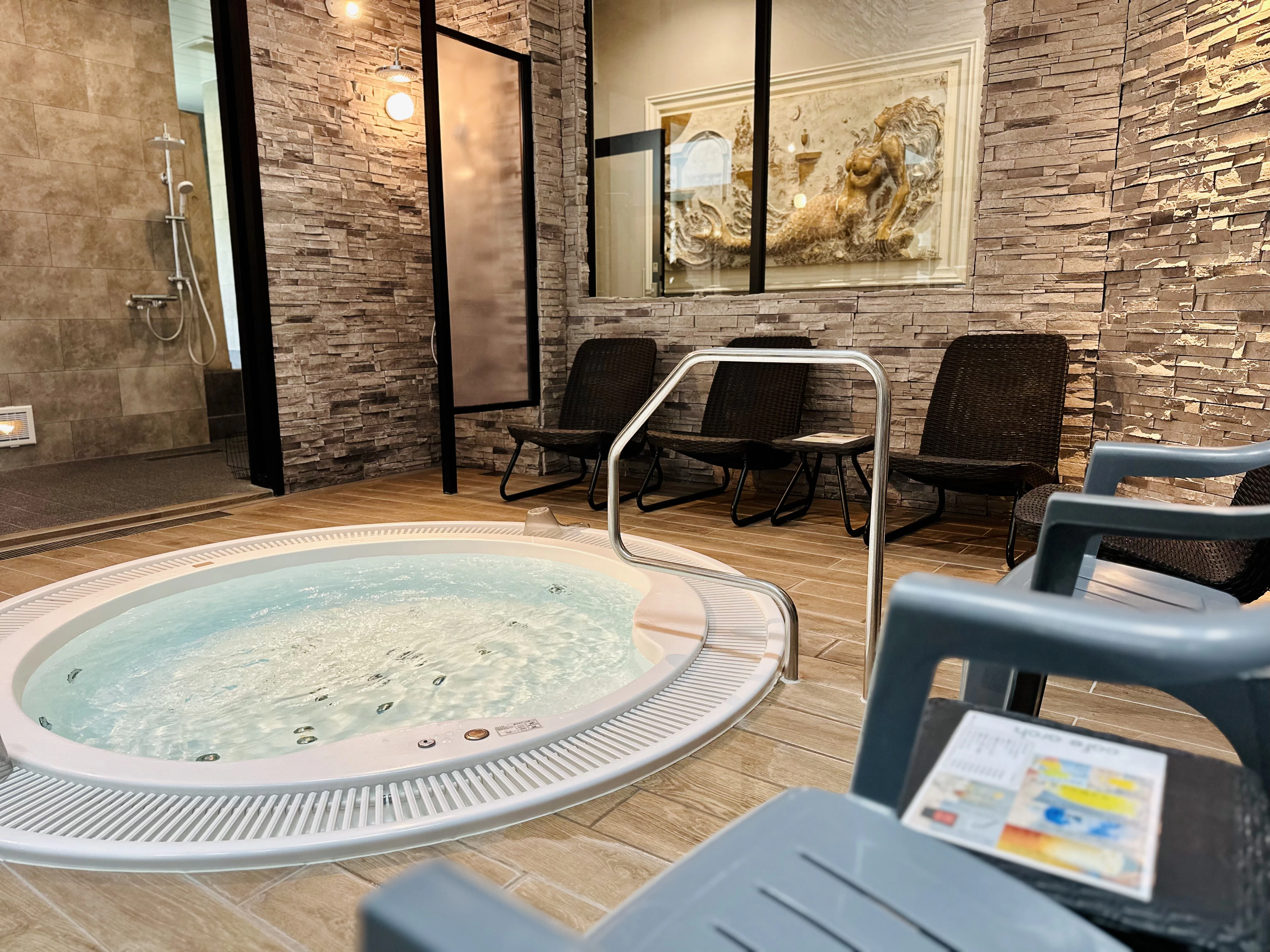 まず入ったのは最も深い水風呂、その名も『朝里ダム』。