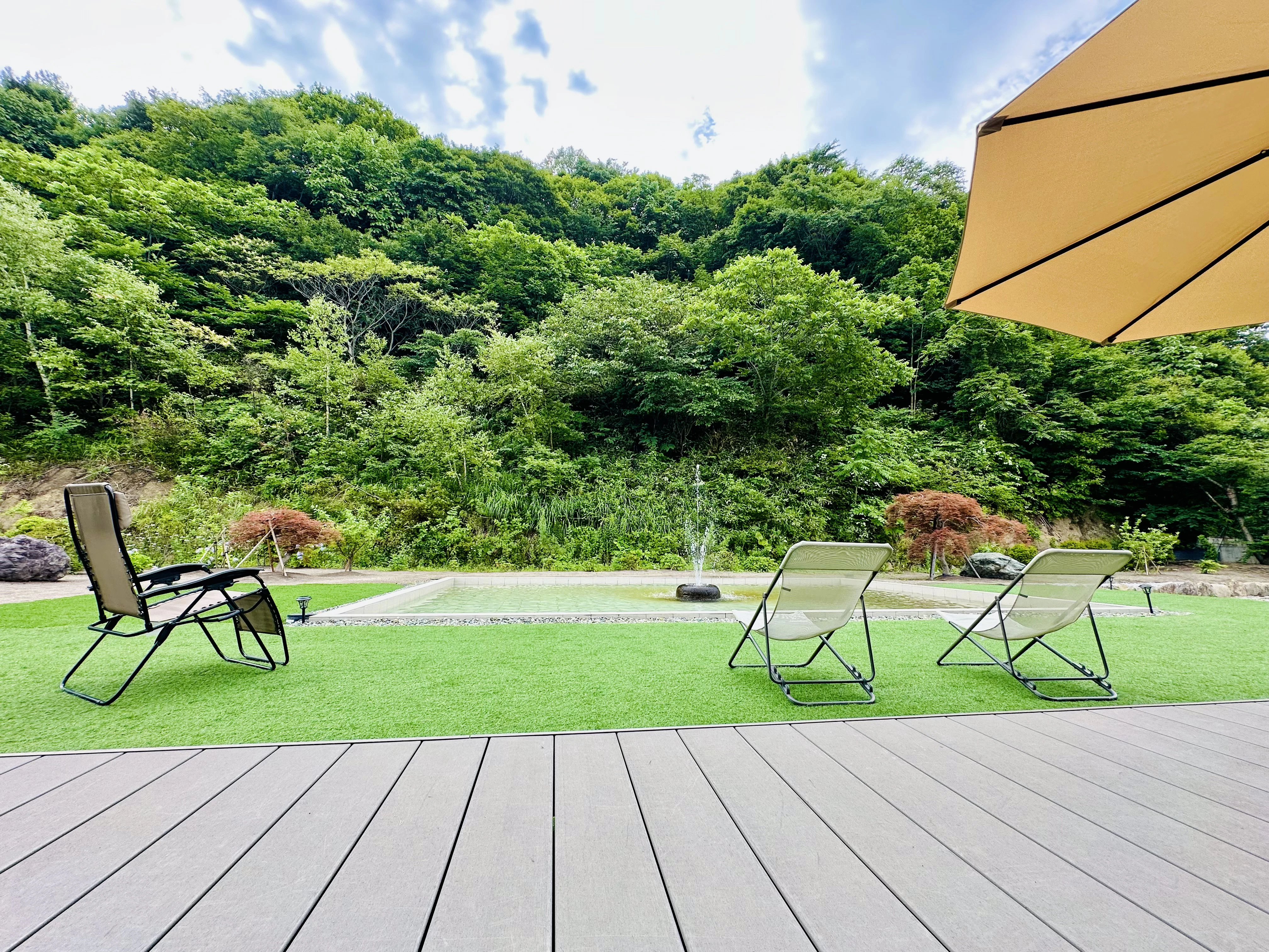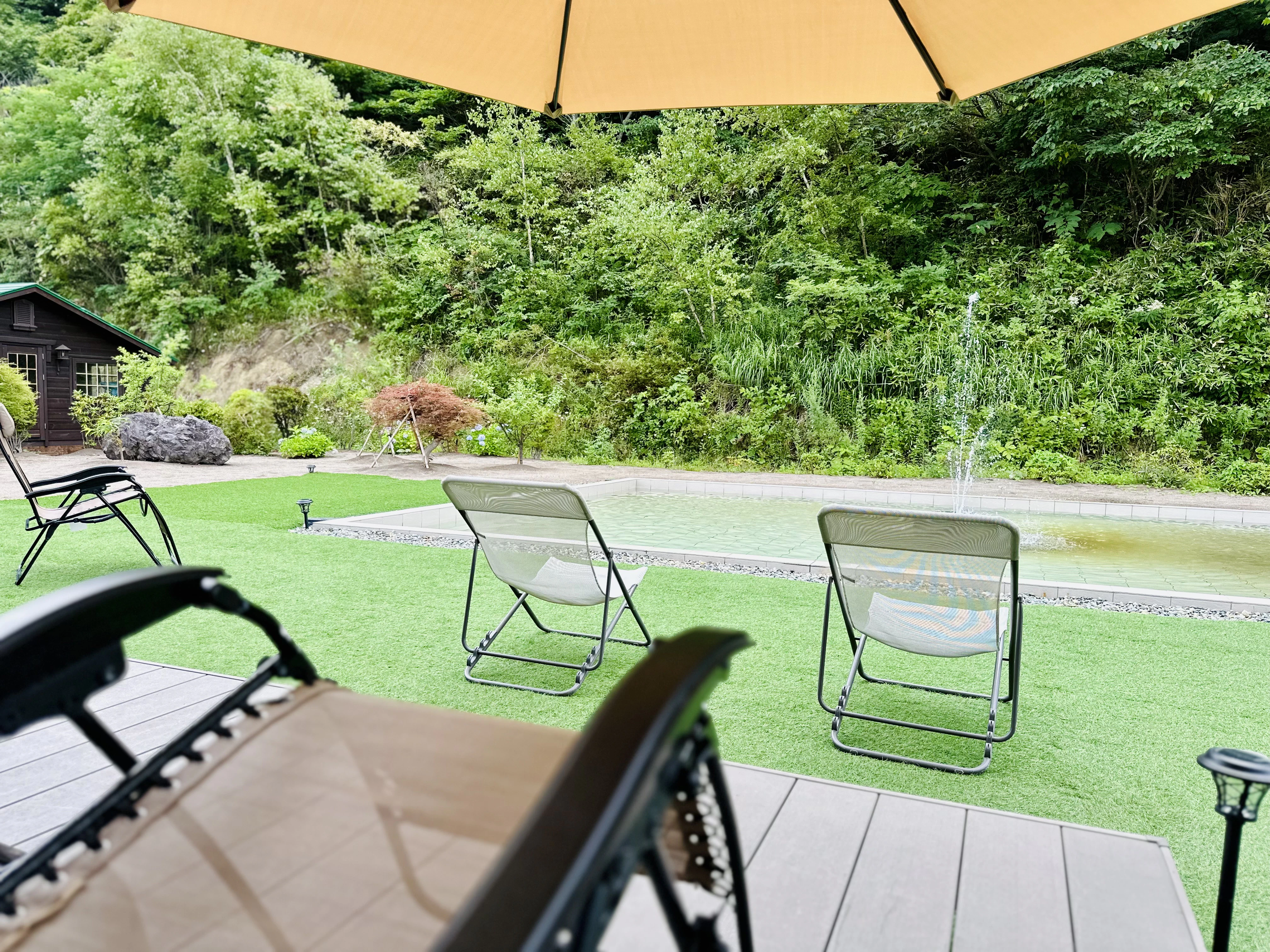 渡会さん:最近外気浴スペースに大きなパラソルを置きました。女性のお客さんから「日焼けしちゃうから屋根が欲しい」とリクエストをいただいて。
