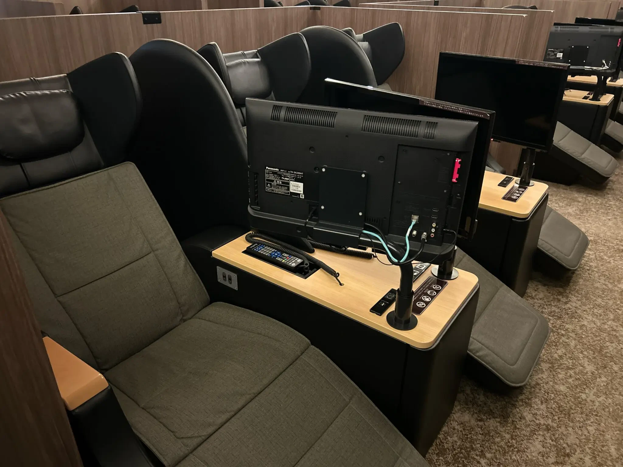 昨年リニューアルを行った半個室のラウンジ。落ち着いた雰囲気の空間でゆっくりチルするのにぴったり!VODも導入されているため、映画を見ながらのんびりと過ごせます。