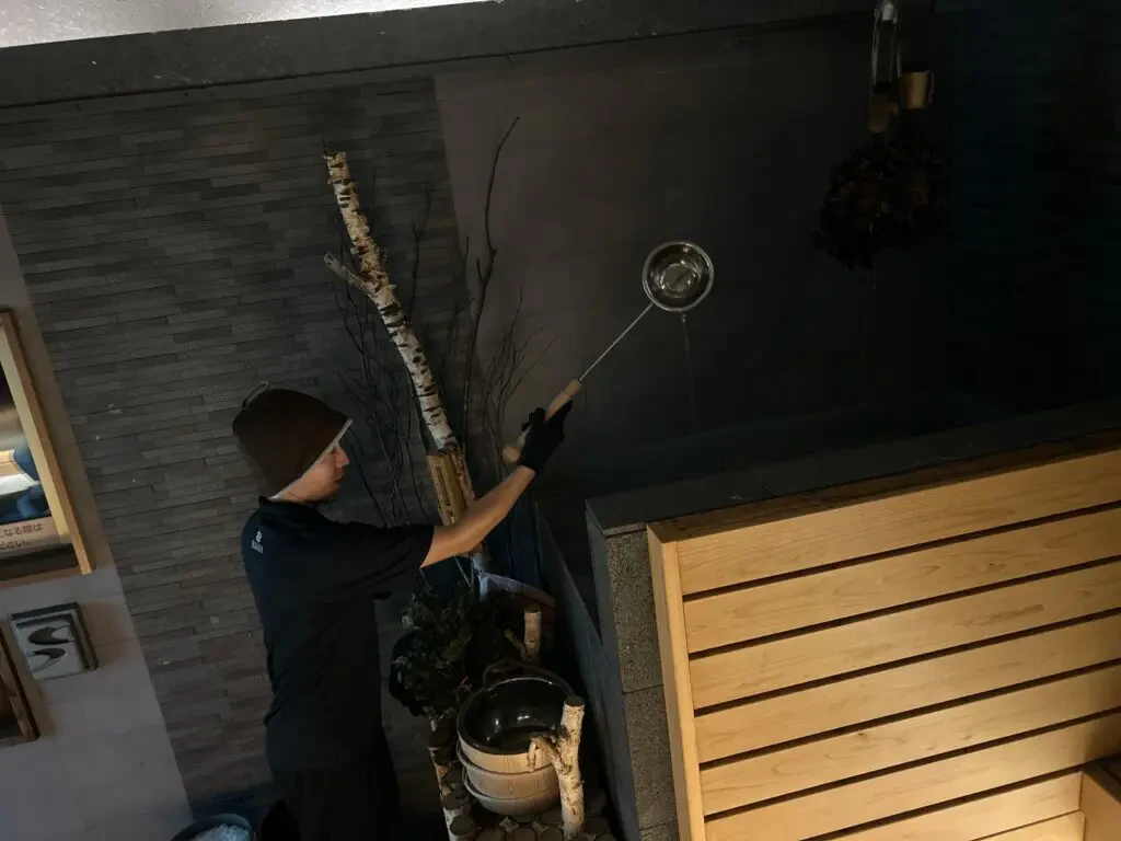 男性浴室で熱波×冷たいしずくを使ったアウフグースを体験!