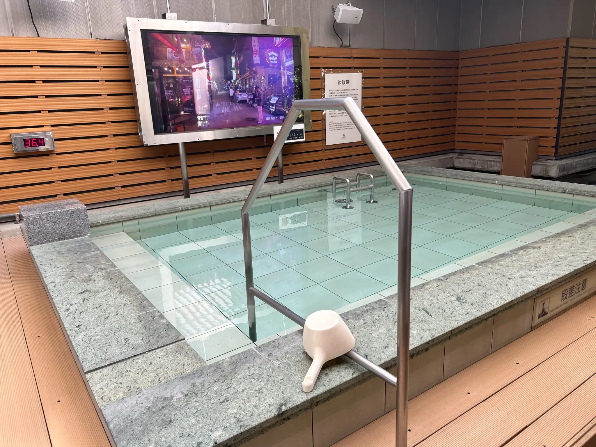 ゆったりと入れる水風呂。サウナ、桶シャワー、水風呂の動線も抜群です!