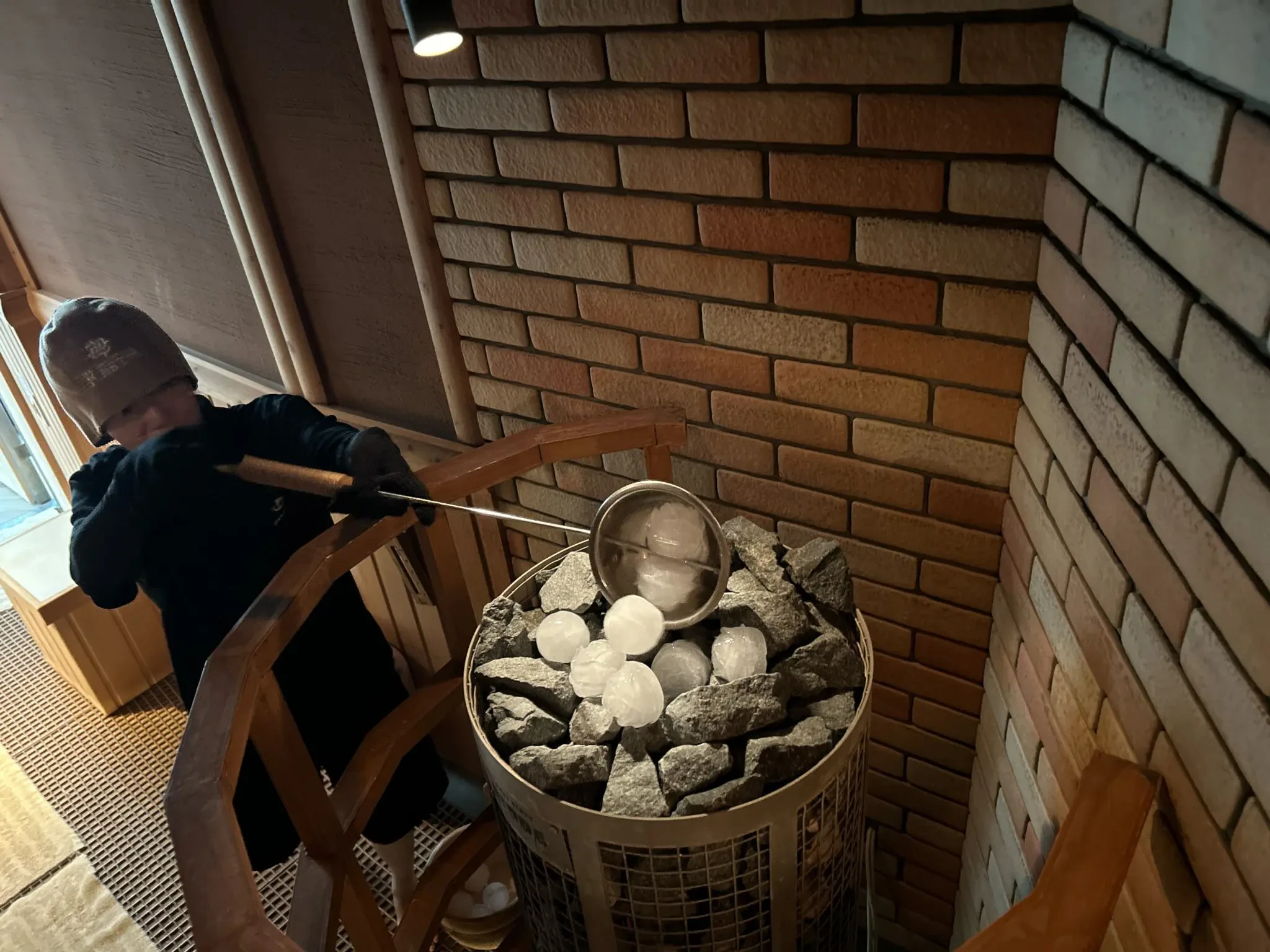 そして冷たいと感じているのも束の間、アウフグースによる熱波で、また熱さが戻ってきました!