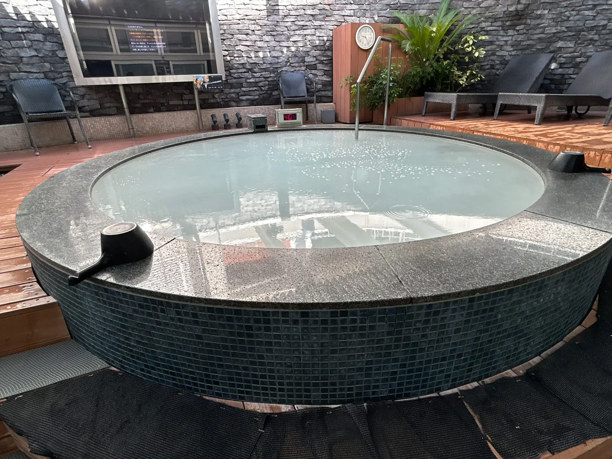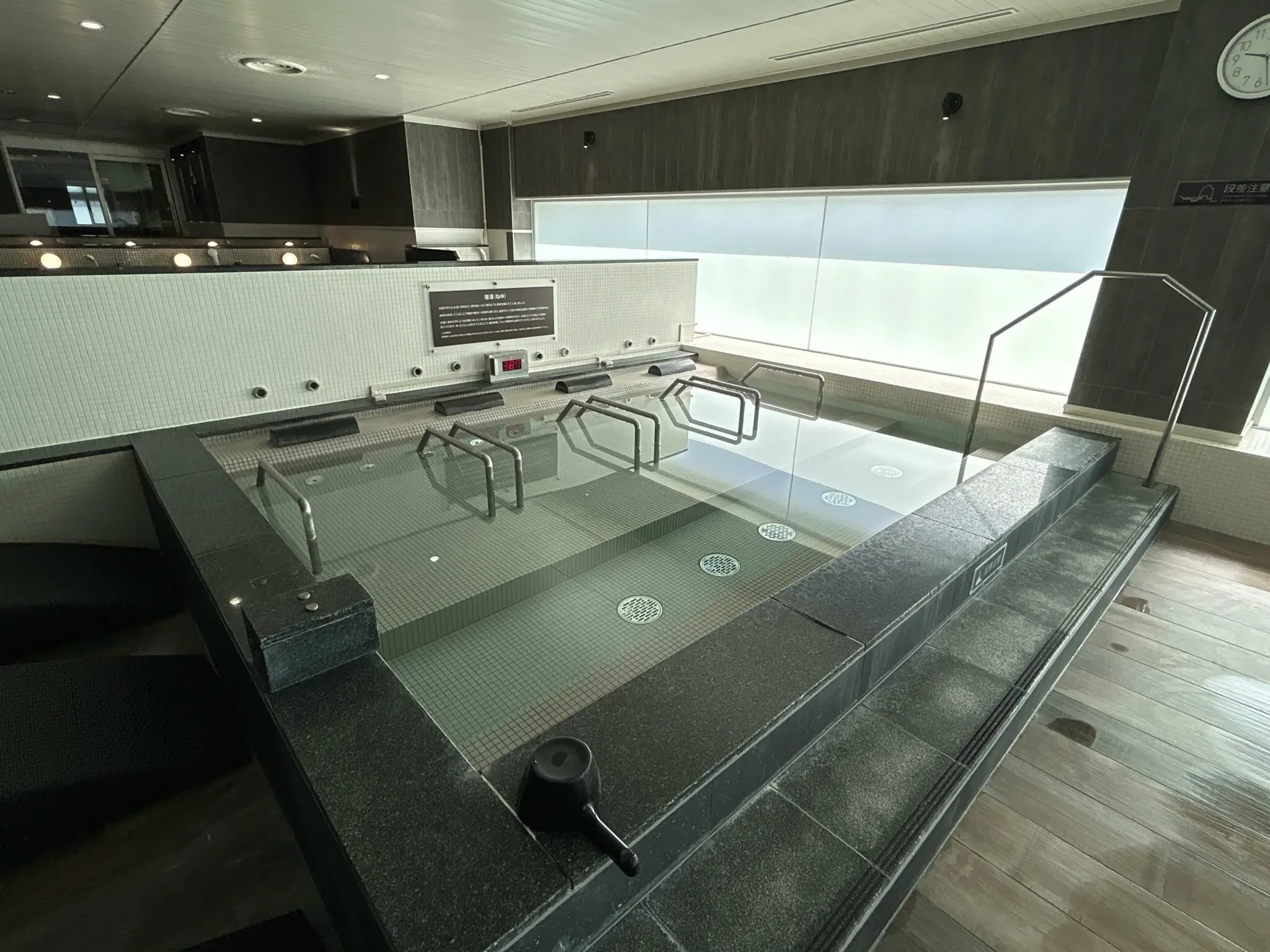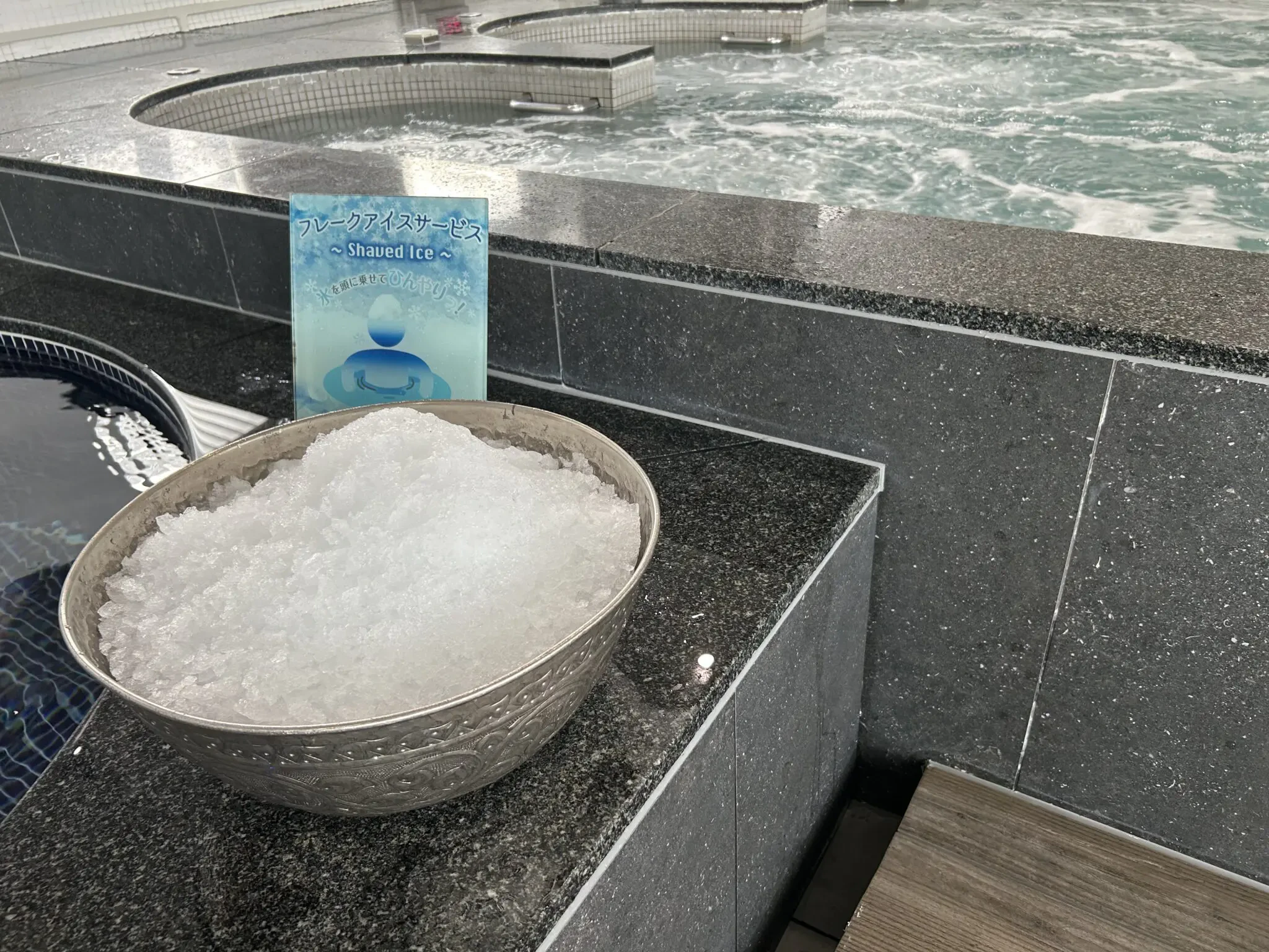 水風呂横にはフレークアイスも置いてあり、サウナ後に頭に乗せて全身クールダウンができます。