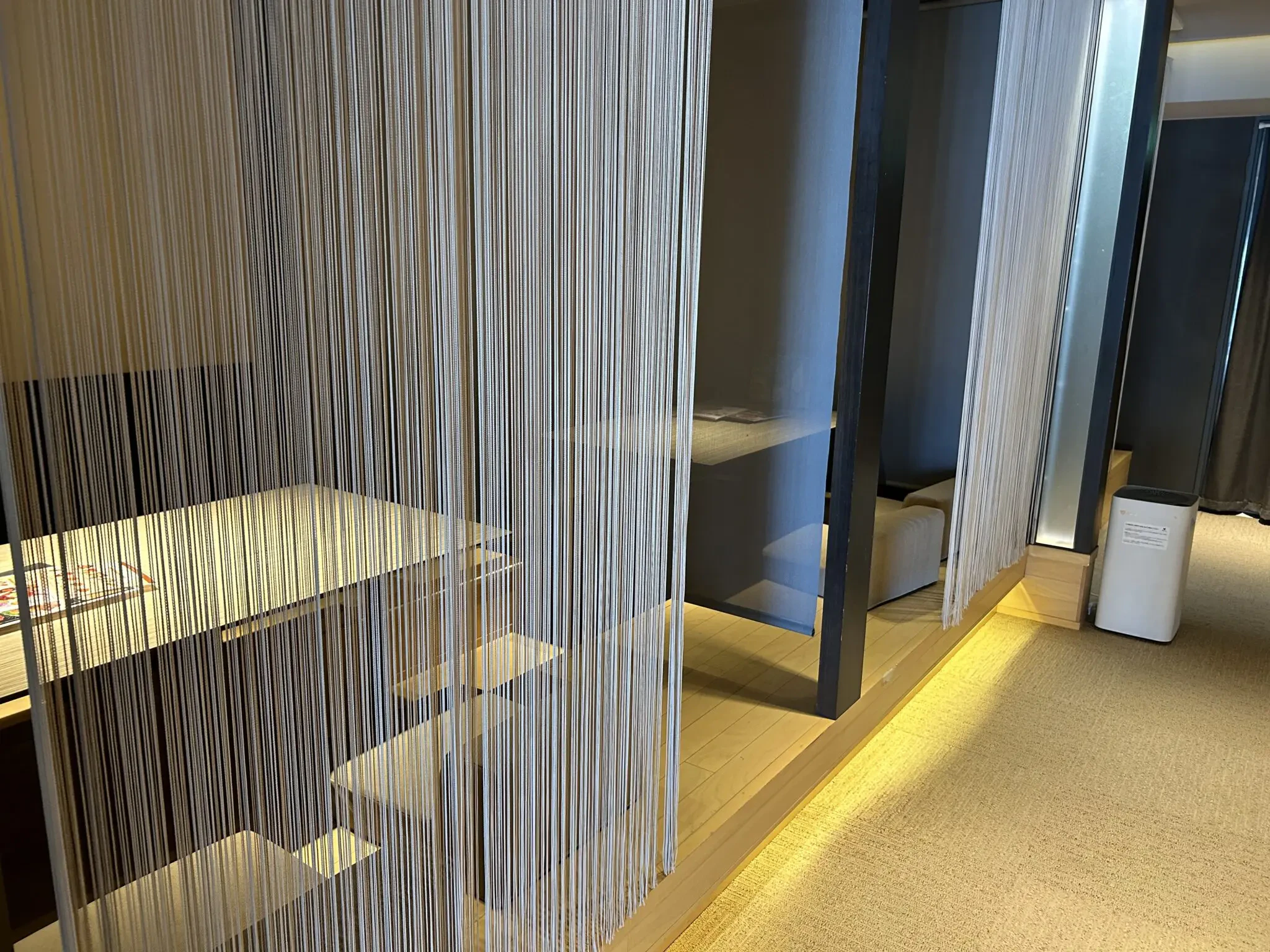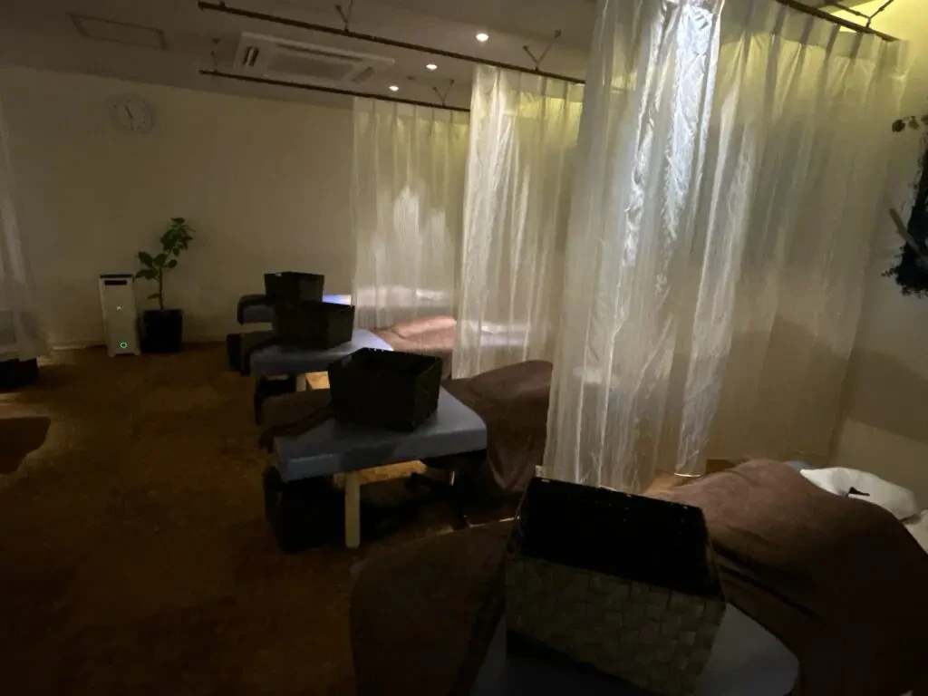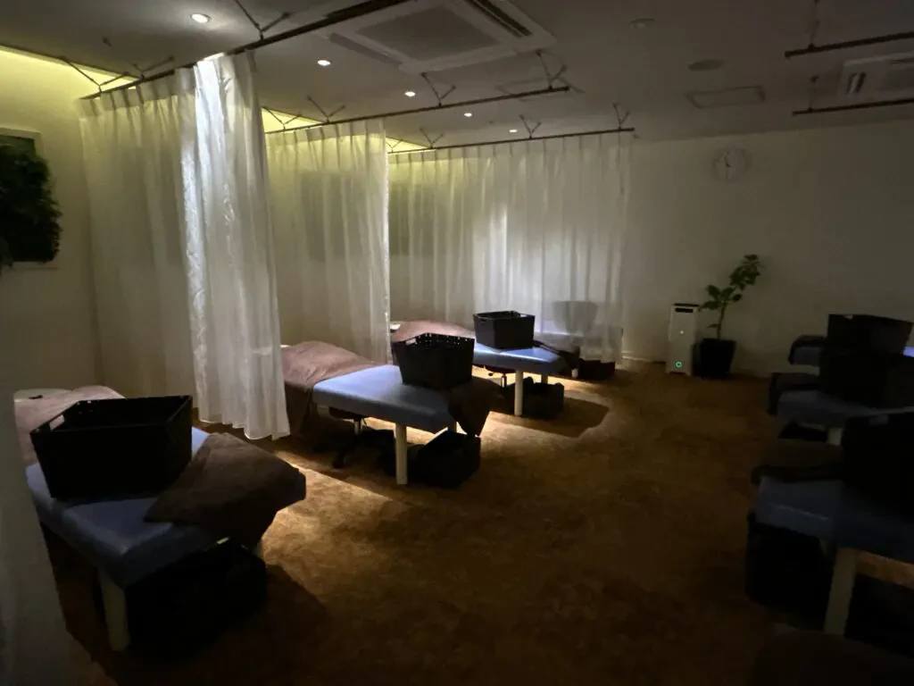 カーテンで仕切られているもみほぐしルーム。ボディケアは館内着で行います。