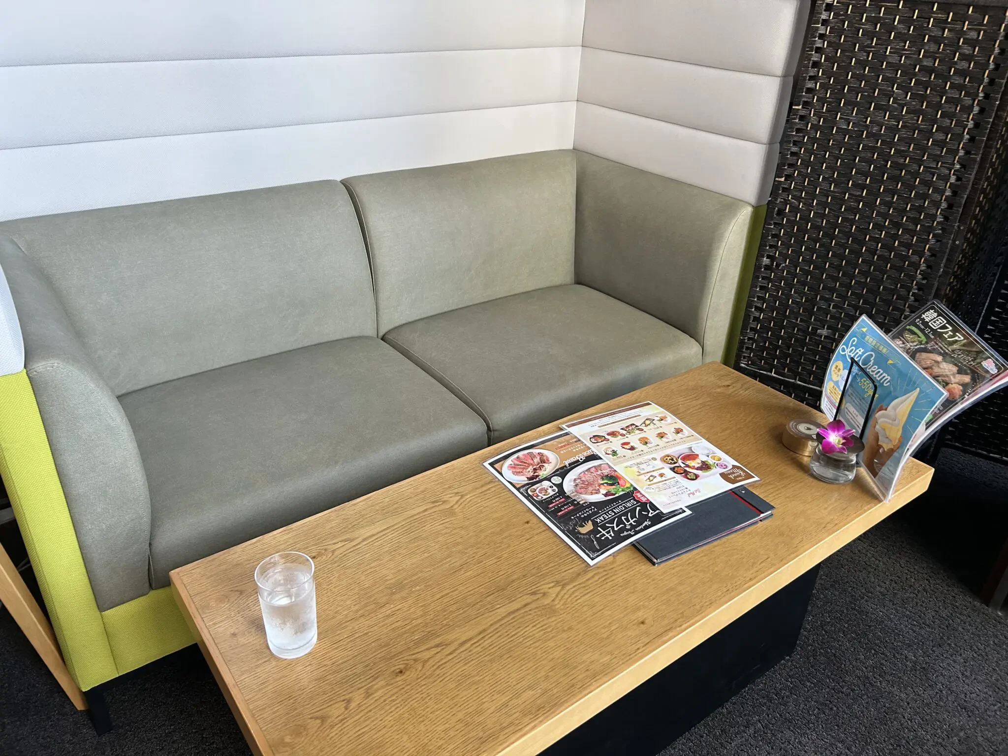 ソファでゆったりできる席。座面が深く、ゆったり座ってチルできます。
