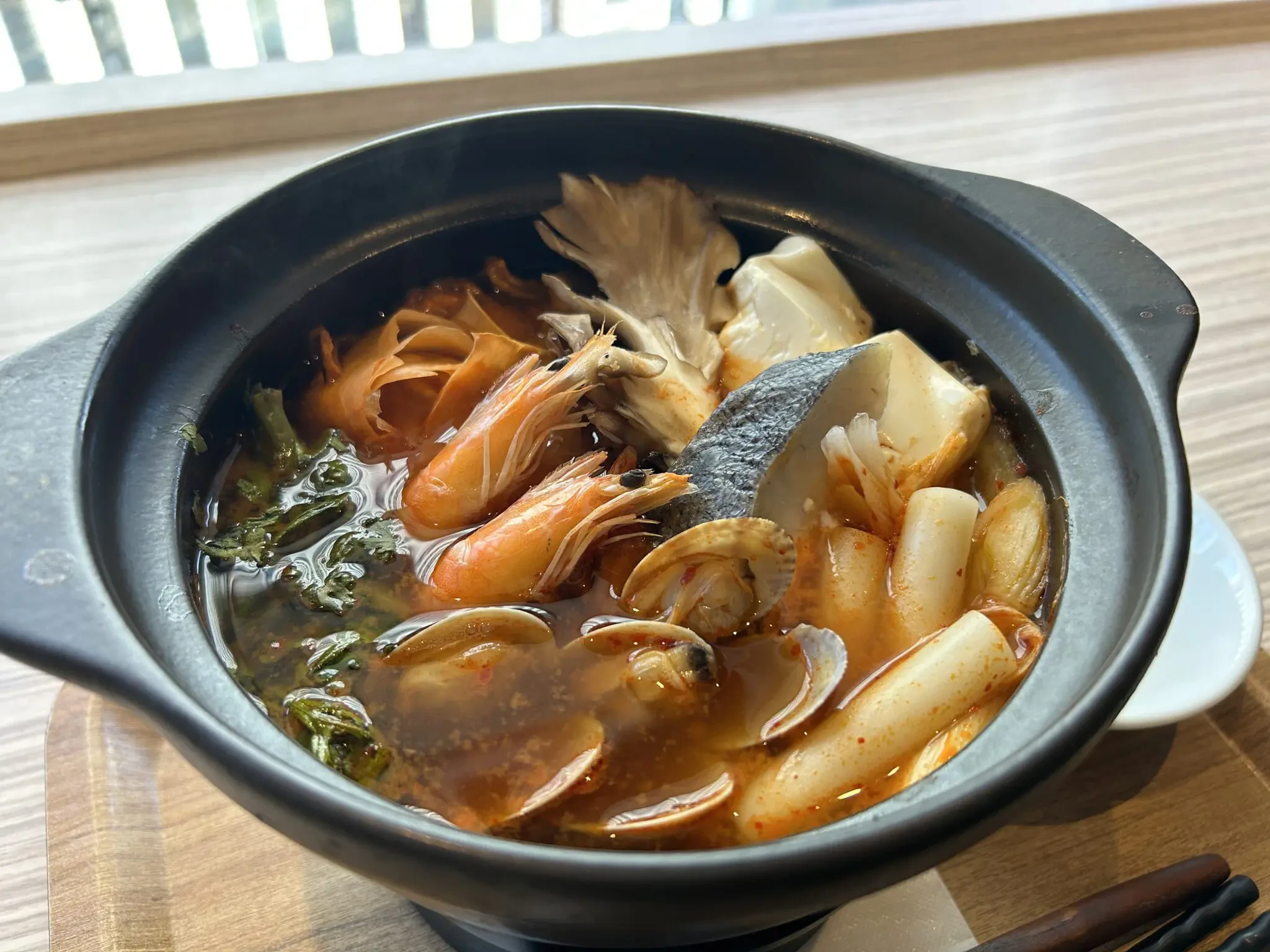 ピリッとした辛さがアクセントになる韓国風海鮮スンドゥブ鍋。