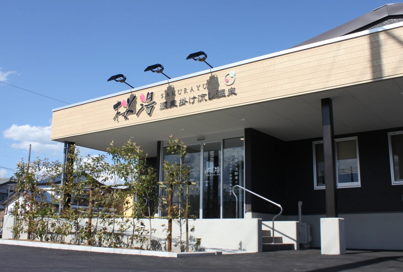 最初に訪れたのは、JR身延(みのぶ)線「国母」駅から徒歩5分の場所にある『源泉かけ流し温泉 桜湯』。源泉かけ流しのお風呂とサウナがたっぷり堪能できる、地元民御用達の温浴施設です。入浴料はなんと500円!(※2025年6月時点)