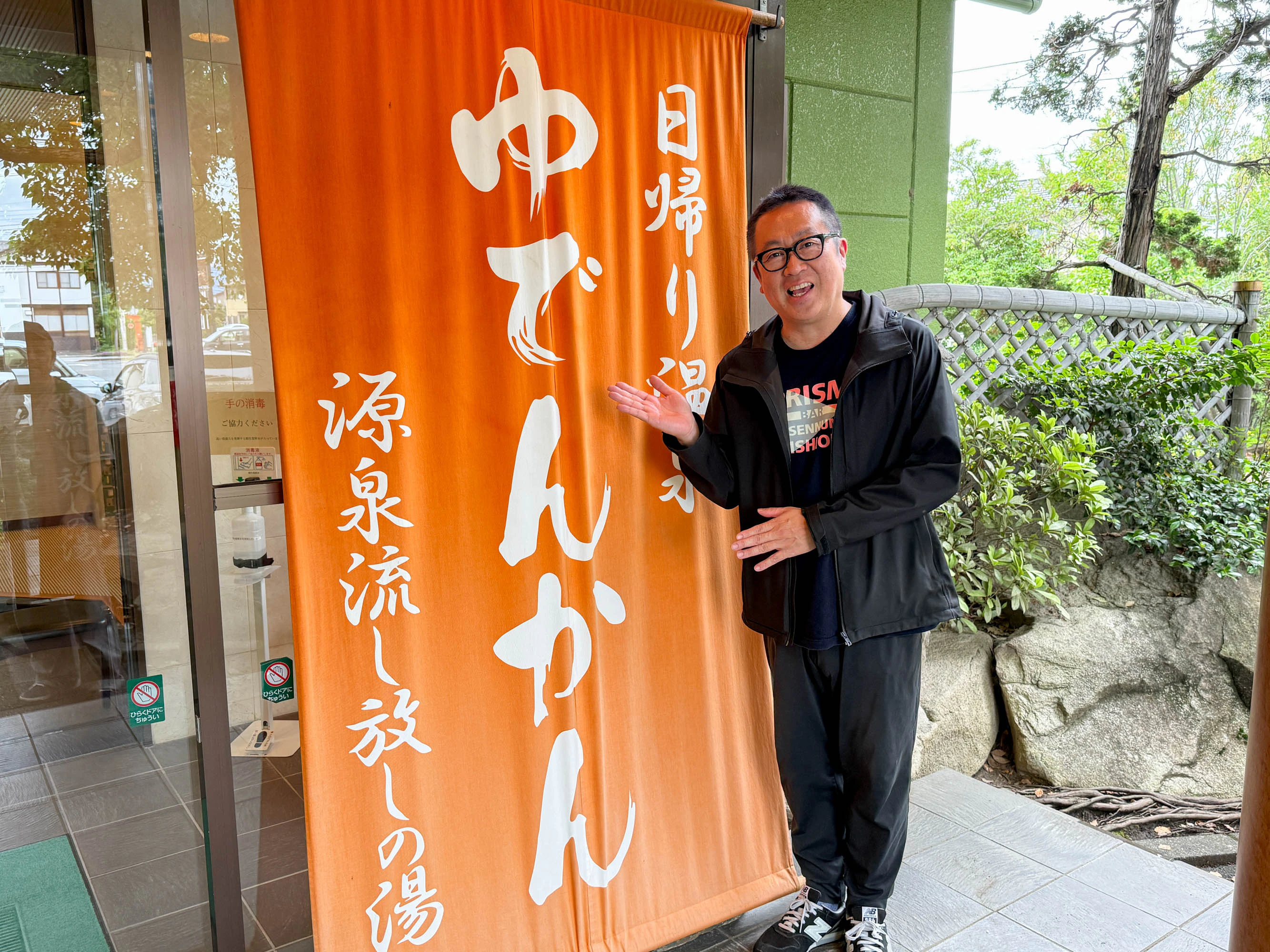 続いてやってきたのは「甲府に来たらここは来ないと」と、濡れ頭巾ちゃんがおすすめする『湯殿館』。JR身延線「常永」駅から徒歩10分の場所にある温浴施設です。