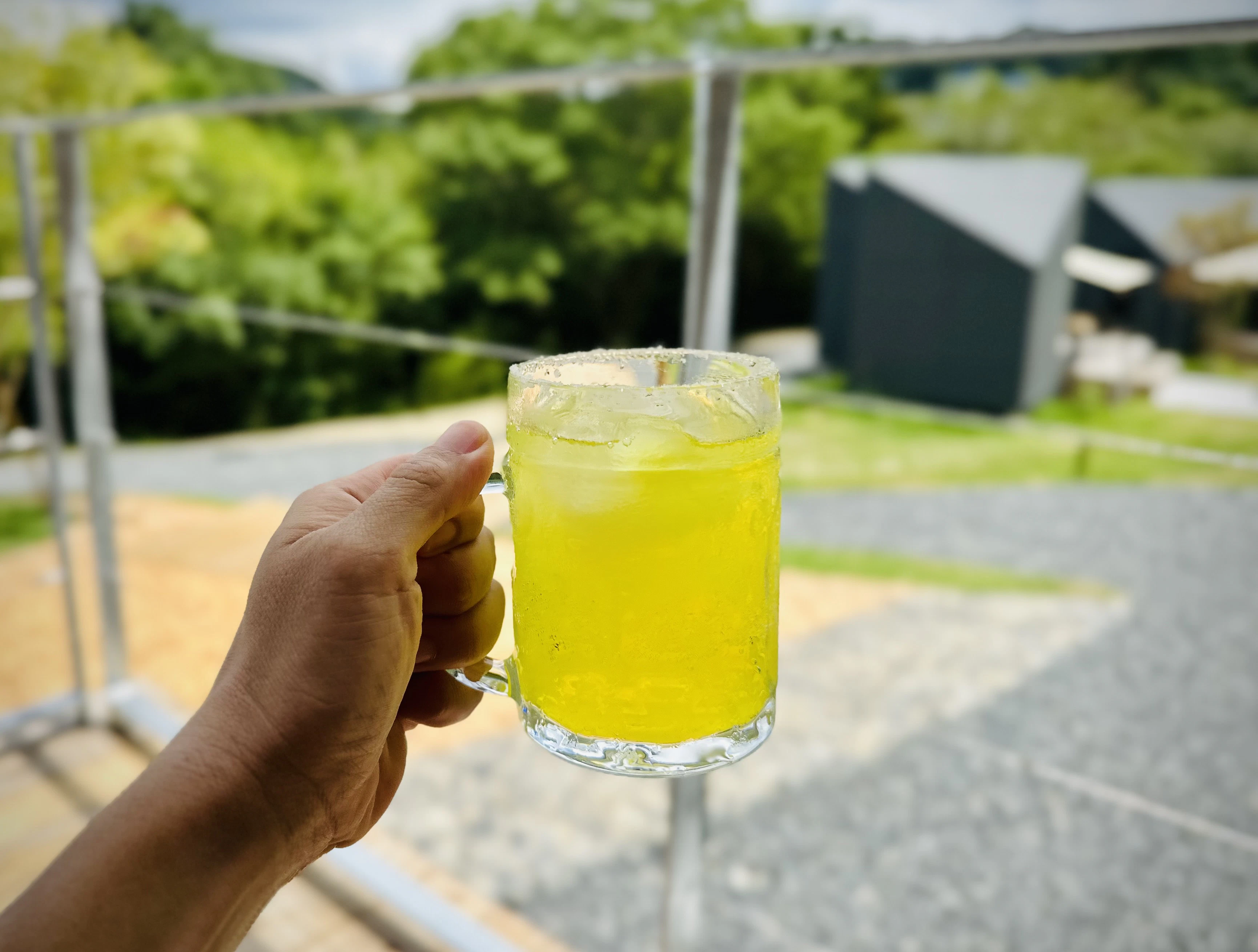 縁についた塩がサウナ上がりにぴったりのしょっぱさで、うまい!いつも飲んでるやつより濃い味でびっくりしました。