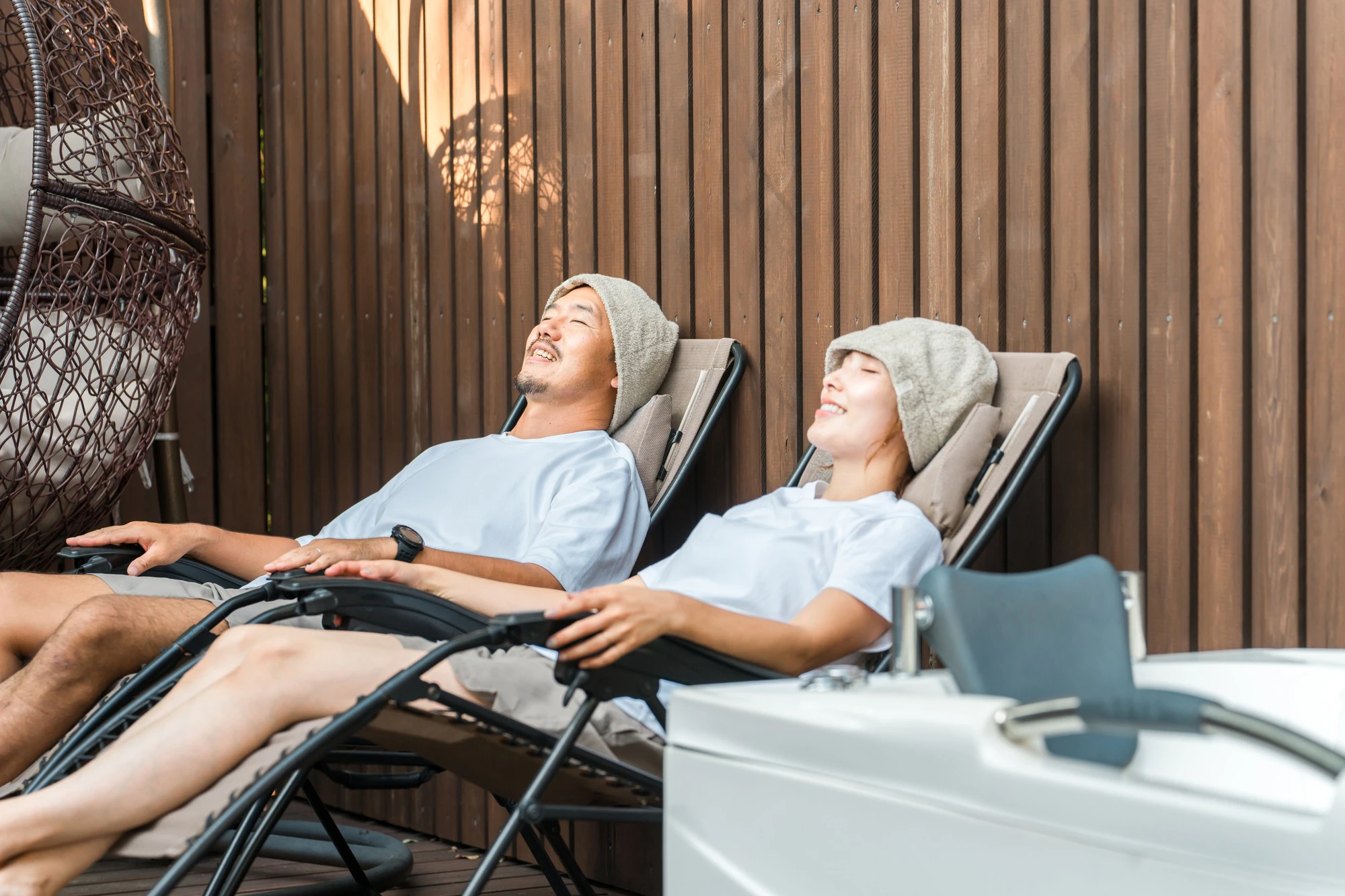 サウナでととのうためには、休憩(外気浴)が大きな鍵です。外気浴とは、外に出てイスに座りながら、外気に触れて休憩することをさします。ポイントは3つあります。