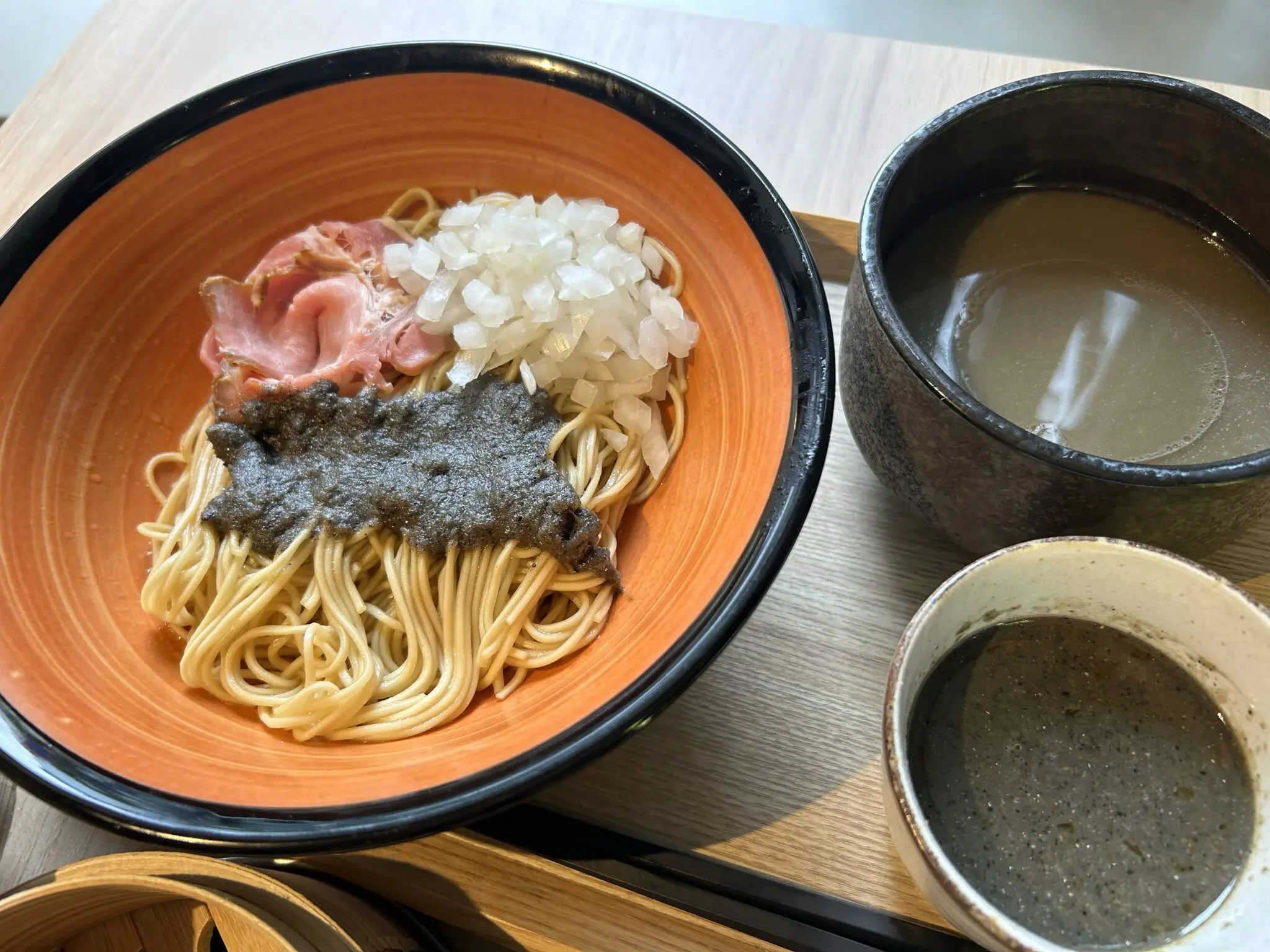 麺は細麺なので、ツルっと食べられます。和え玉をそのまま、つけダレ、つけ汁と全て異なる風味が楽しめるので、最後まで飽きることもありません。また、味もしっかりしていて、サウナ後に食べるのにもぴったりです!