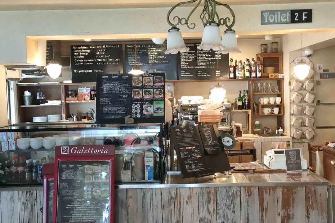 Galettoriaは、種類豊富なクレープ&ガレットが味わえる穴場カフェ。まるでフランスの郊外にタイムスリップしたかのような、可愛らしくどこか懐かしい店内が特徴です。