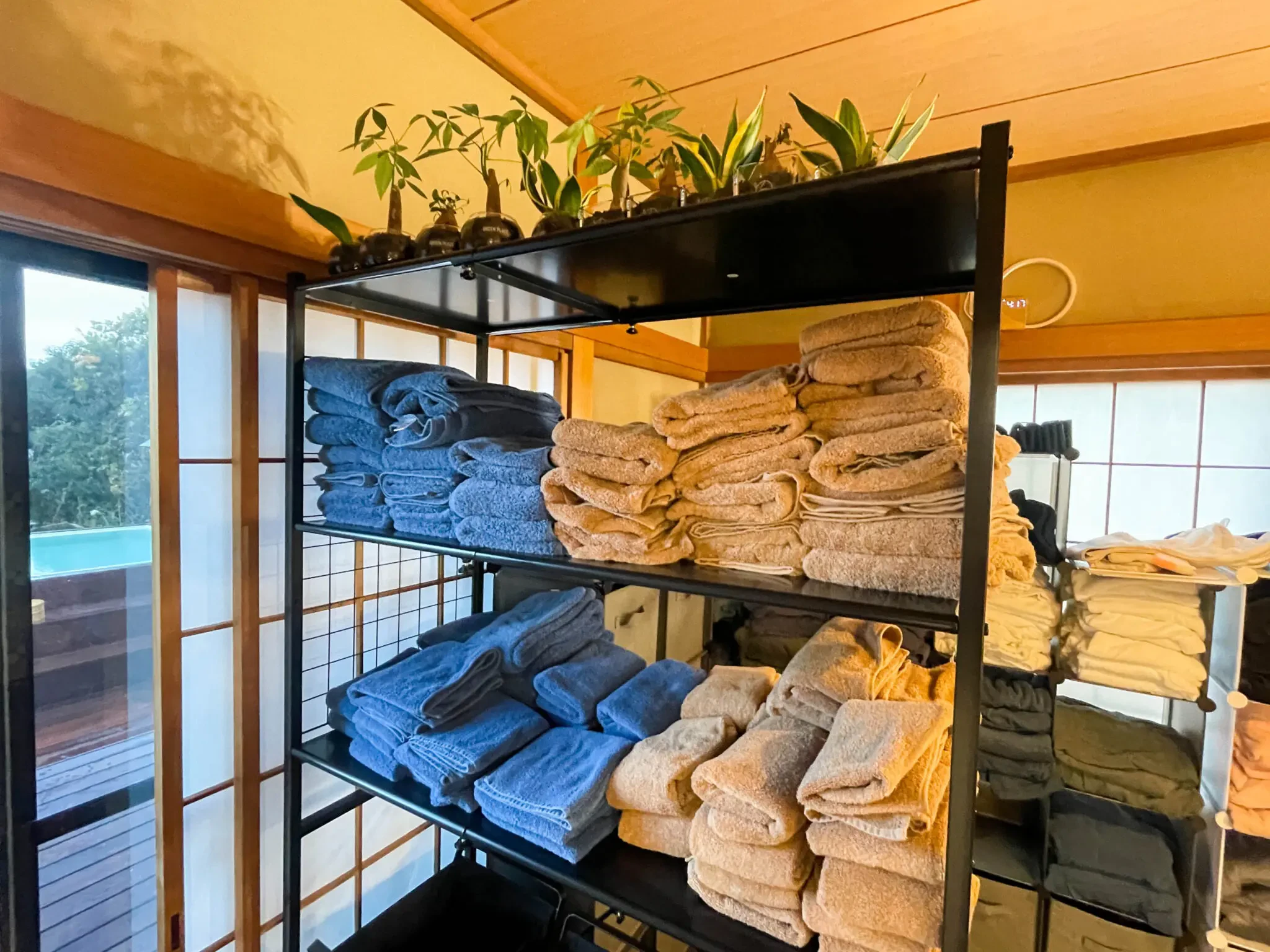 「わたし自身、濡れたタオルやポンチョをくり返し使うのがいやで。ここには3セット分のサウナアイテムを揃えることにしました。滞在中は新しいタオルやポンチョで気持ちよくサウナを楽しんでほしいですね」と山本さん。