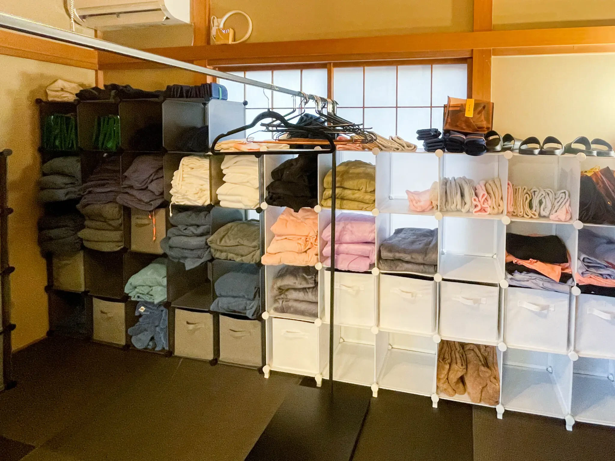 すごいのは滞在時間だけでありません。更衣室に準備されたタオル、サウナアイテムの数々。これらすべて滞在中に利用してOK!