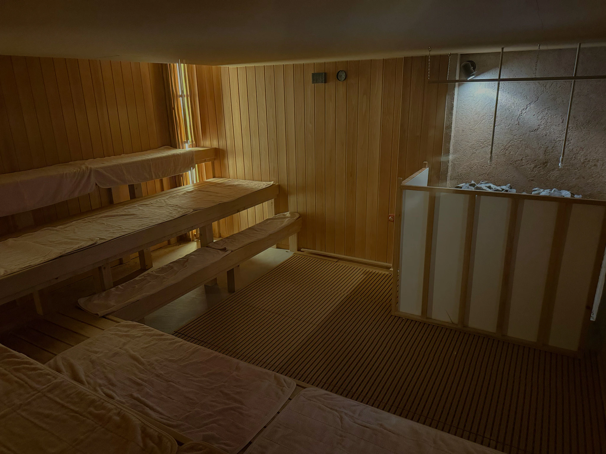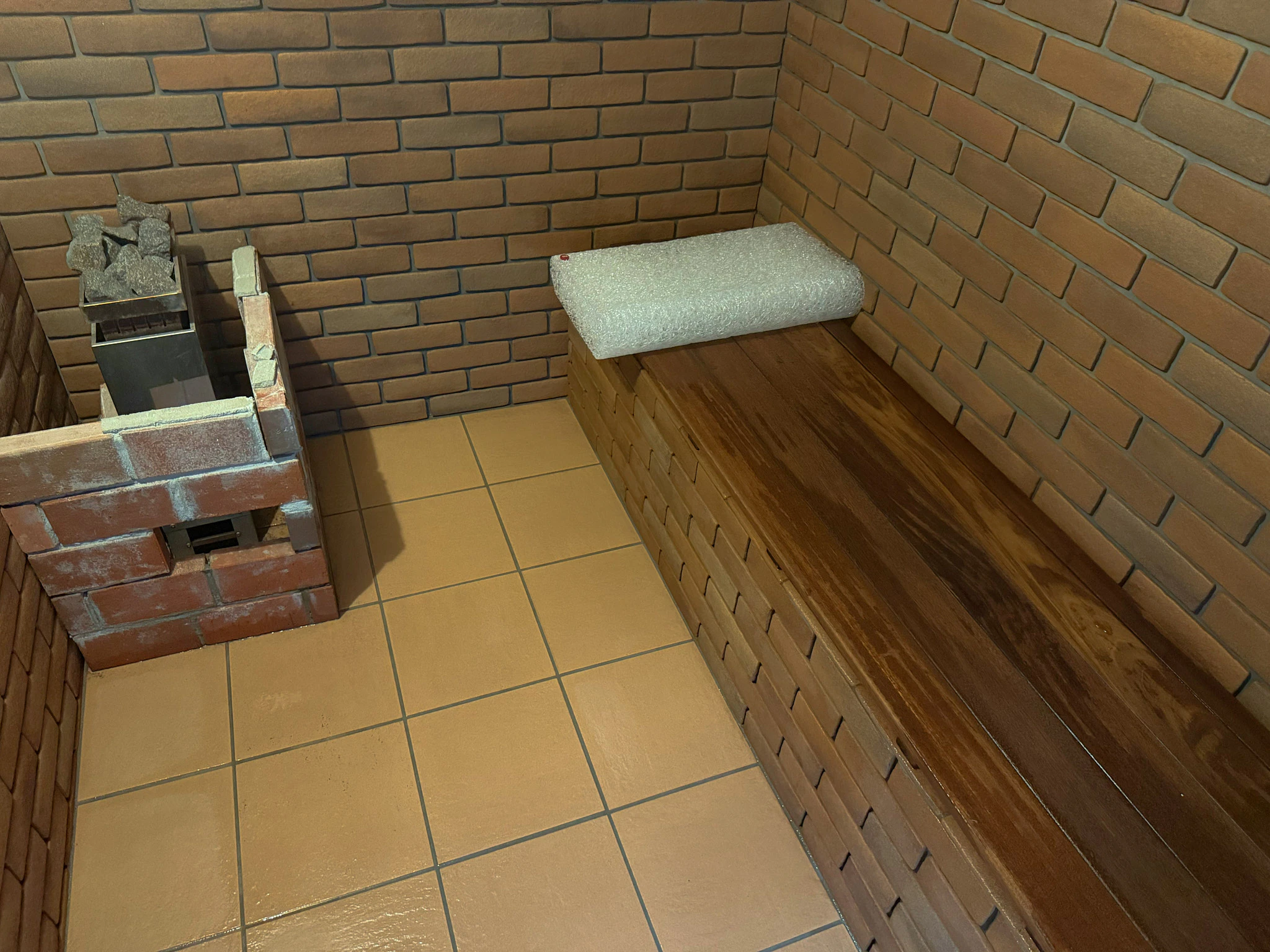 サウナはバチバチのあつさ!温度計は90℃をさしていましたが、場所によっては100℃を超えるそうです。