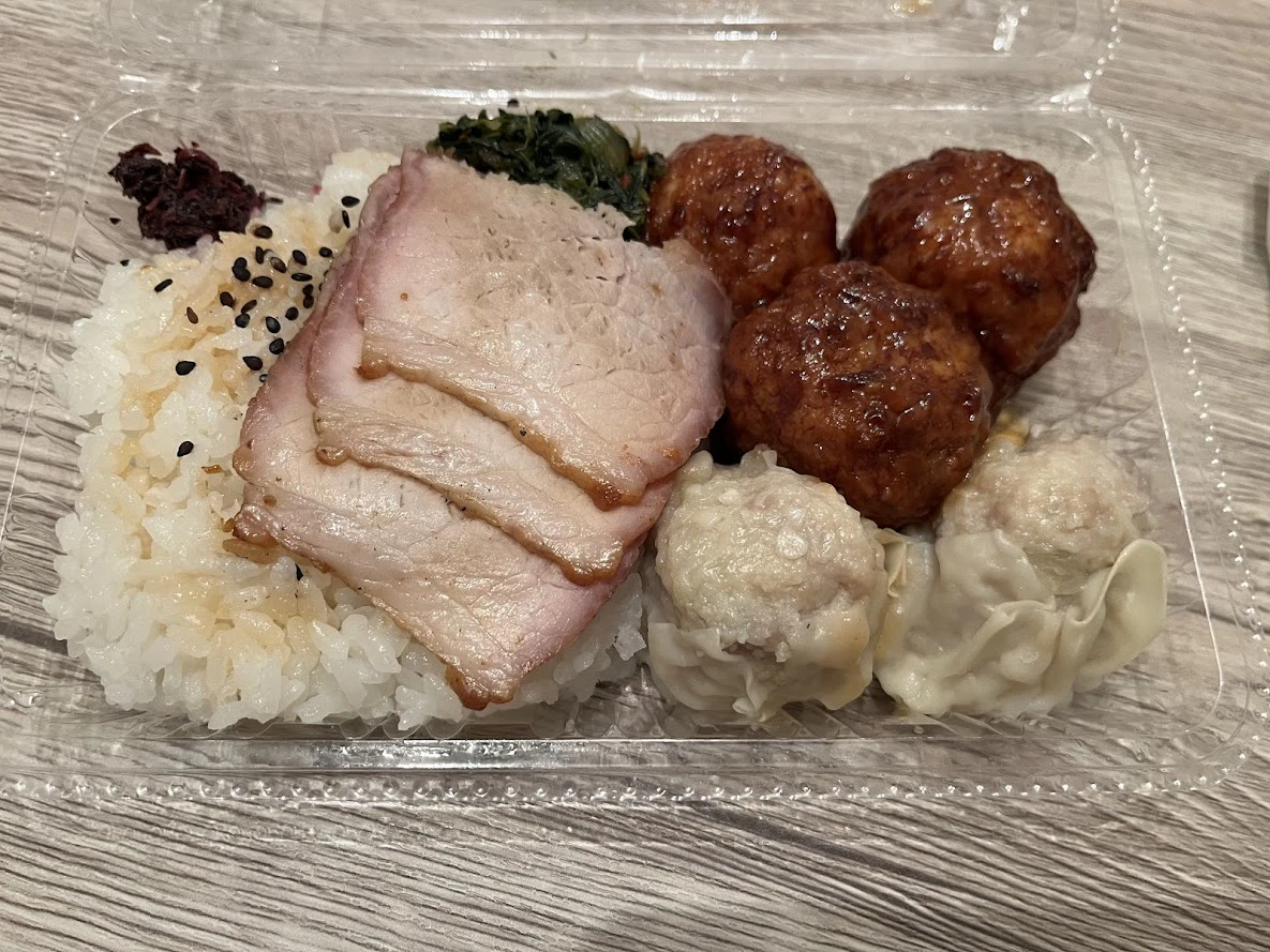 一番人気の商品は盛り合わせライス。チャーシュー、シウマイ、肉団子と主役級のおそうざいがぎゅっと詰まっています。