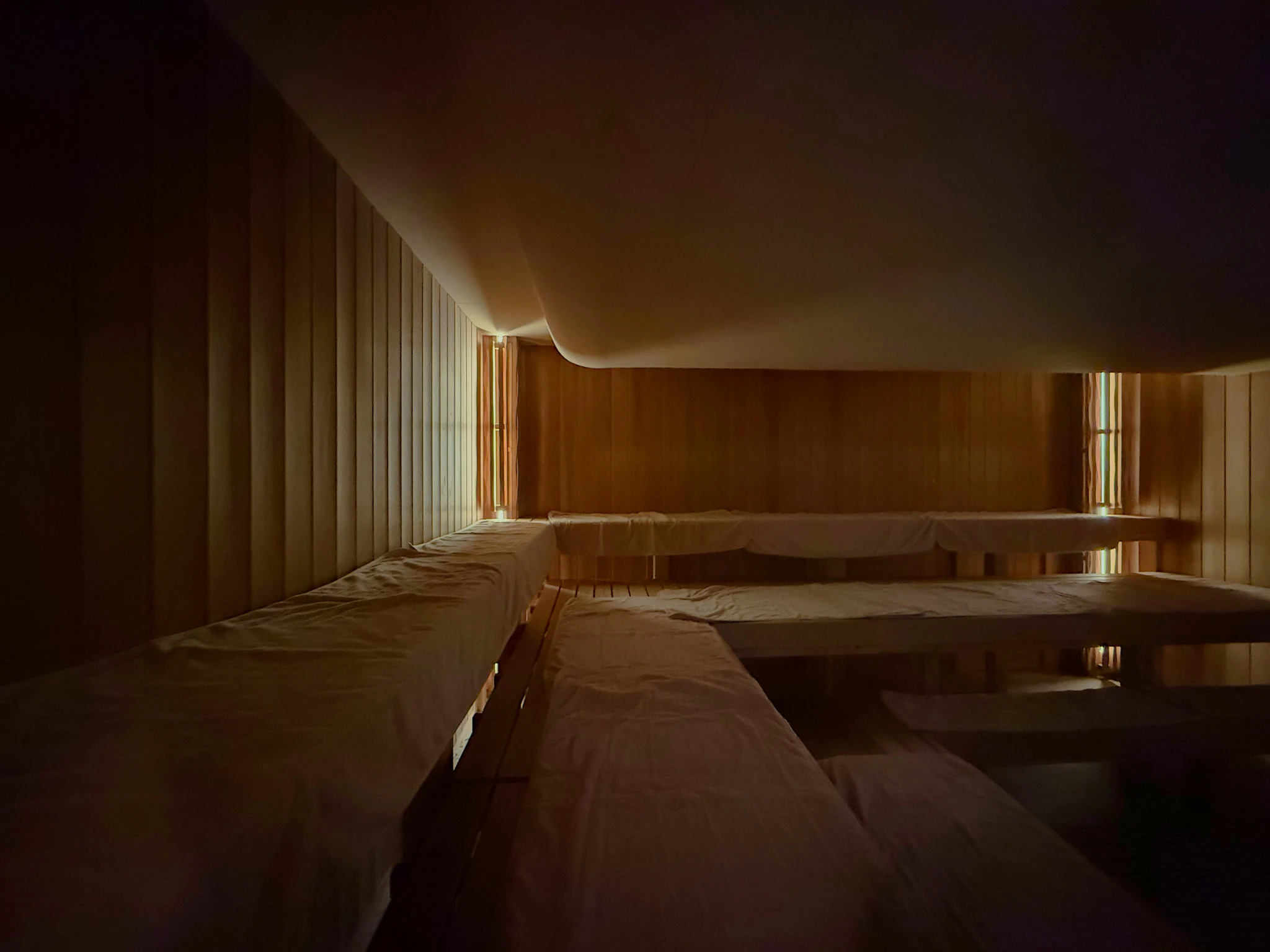 2つ目は瞑想ルームです。銭湯だった頃の旧サウナをアレンジした空間で、名前の通り瞑想をして没入するのにぴったり。