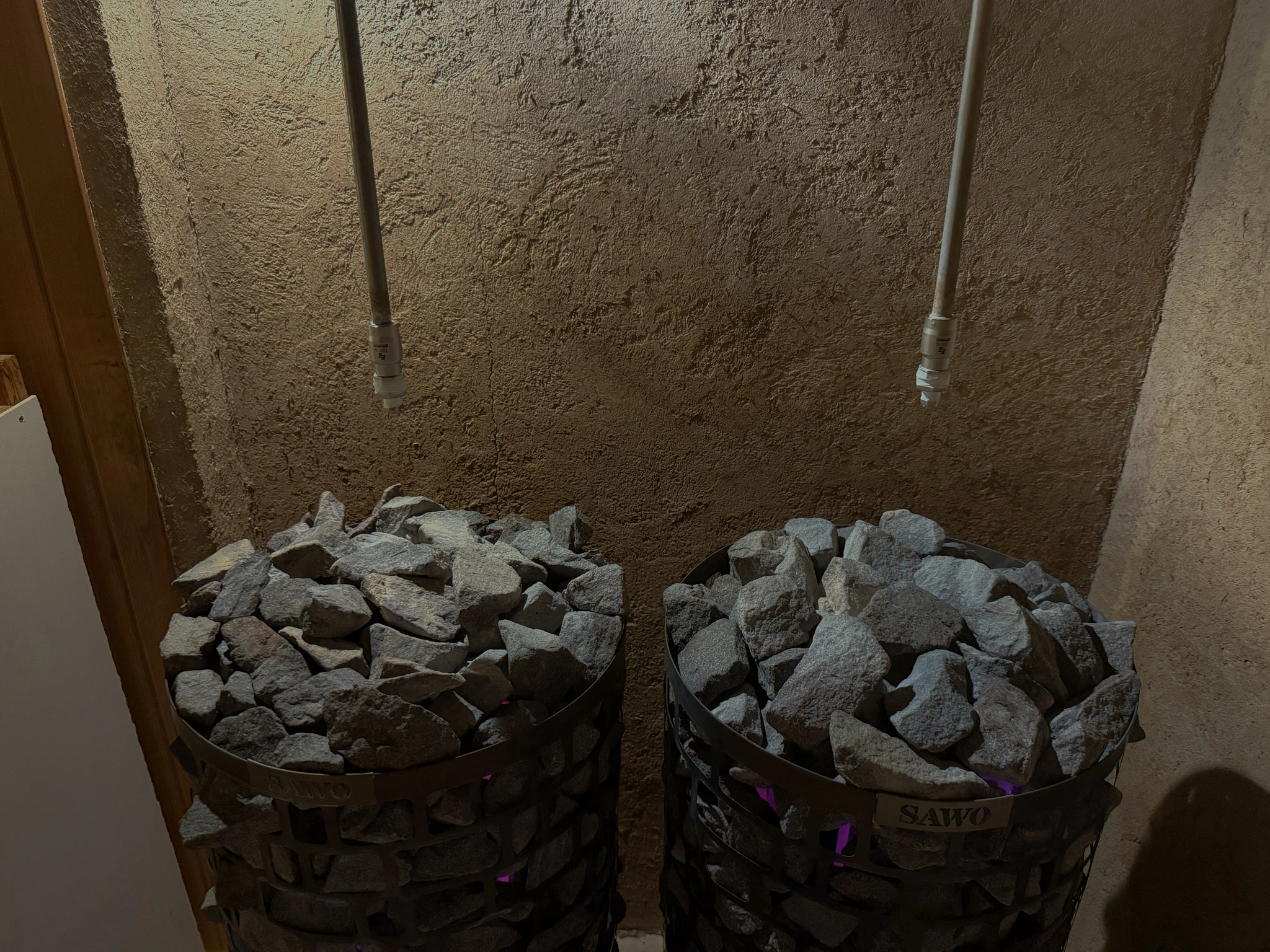 オートロウリュは20分ごとに作動。2つあるサウナストーブにドバッと投入され、いっきに熱さが広がります。