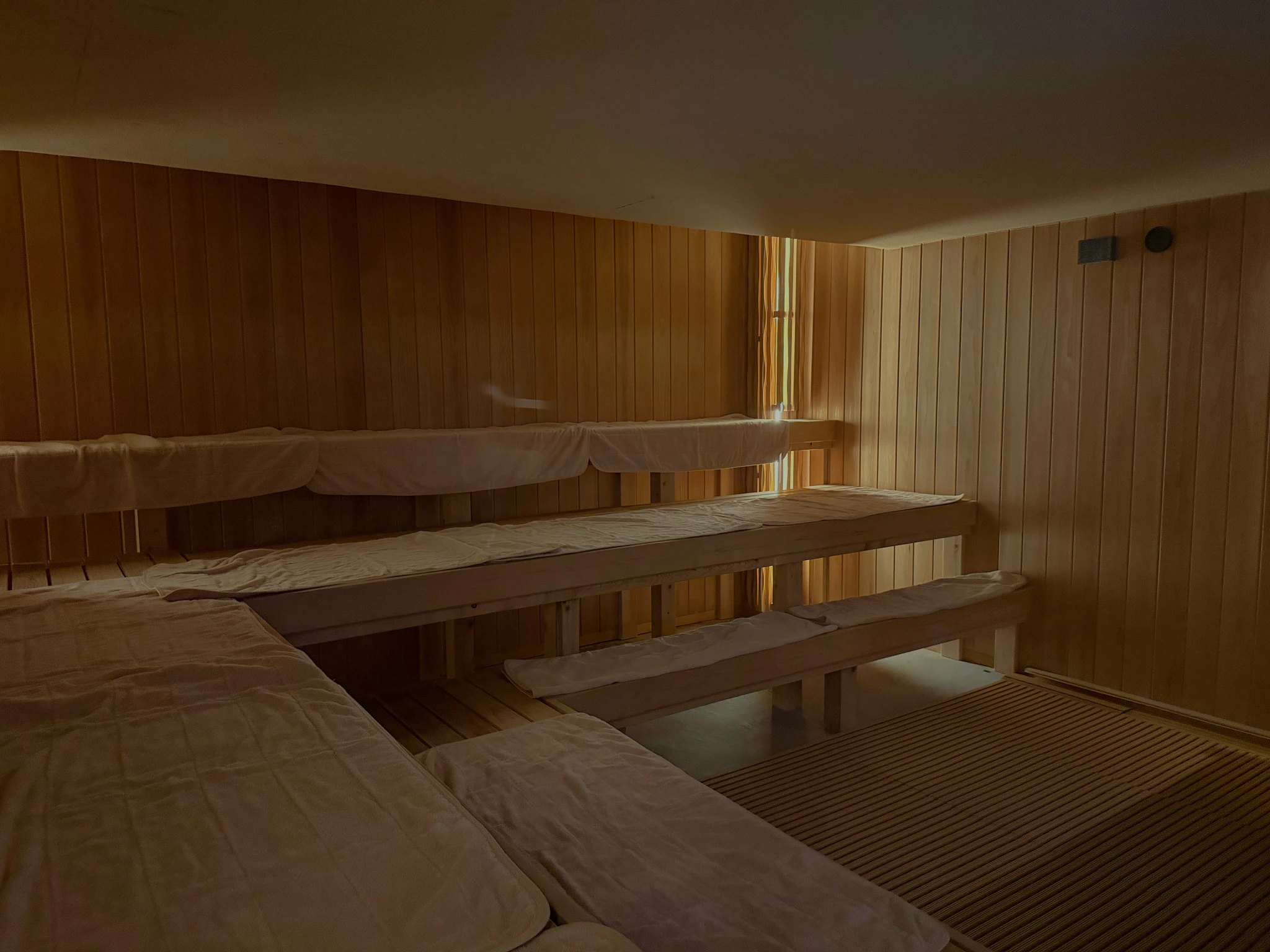 2段目にいたときはオートロウリュの蒸気がビリビリと感じられました。2段目から1段目に降りる人もちらほらいました。